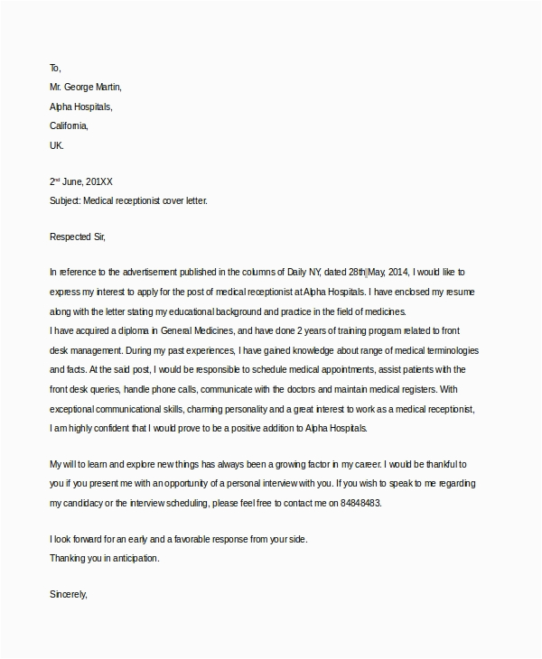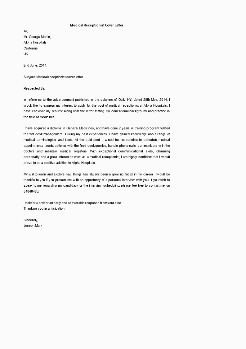 9 photos of the Sample Resume Cover Letter for Medical Receptionist