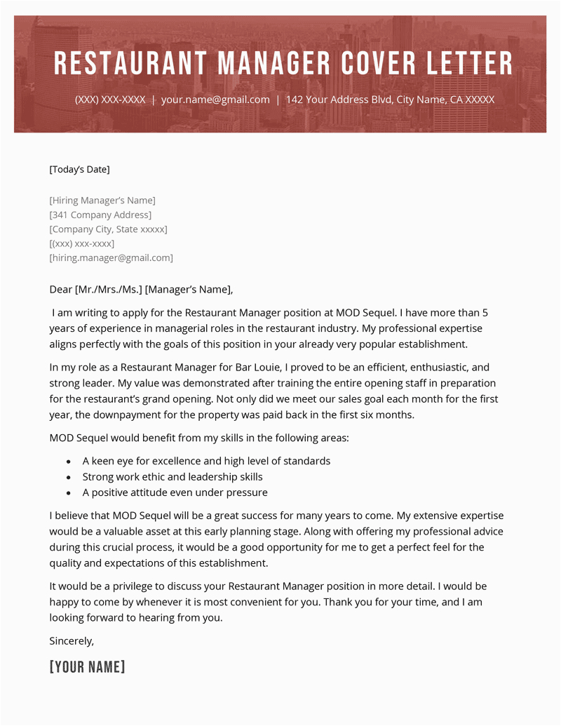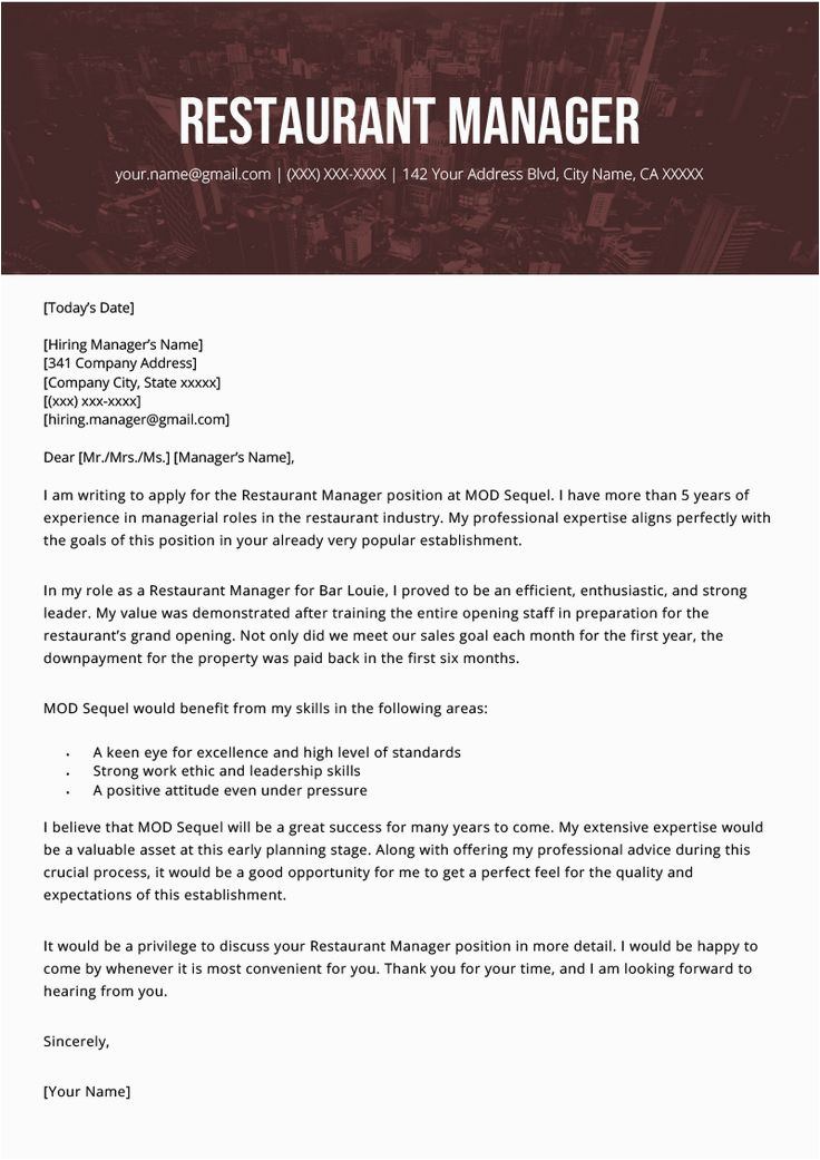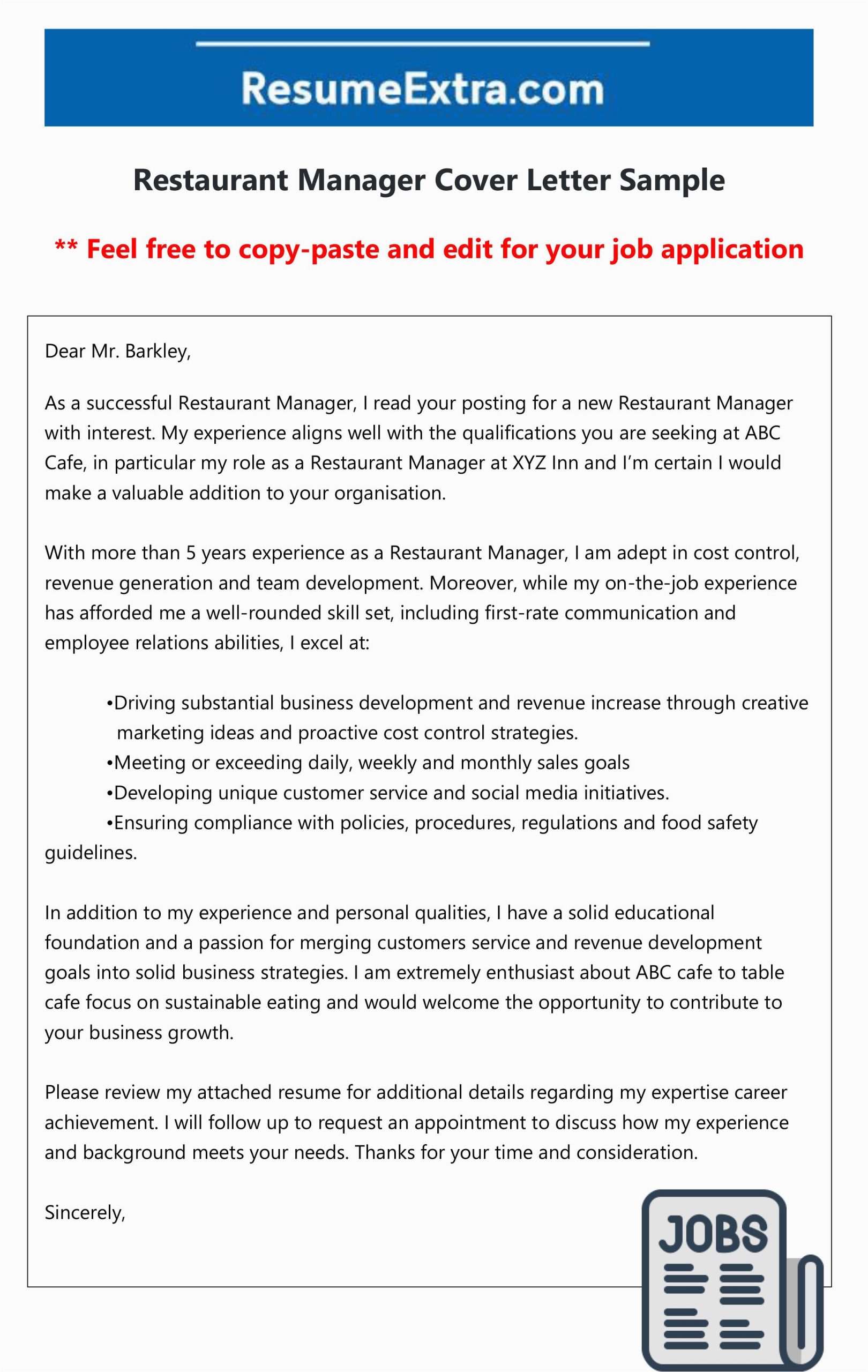Sample Resume Cover Letter for Restaurant Manager Restaurant Manager Cover Letter Sample & Full Guide and all other pictures, designs or photos on our website are copyright of their respective owners. we get our pictures from another websites, search engines and other sources to use as an inspiration for you. please contact us if you think we are infringing copyright of your pictures using contact page. we will be very happy to help you.