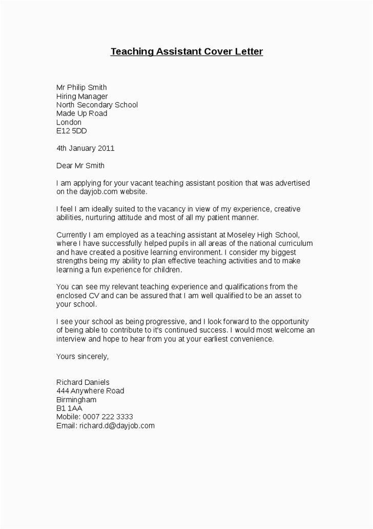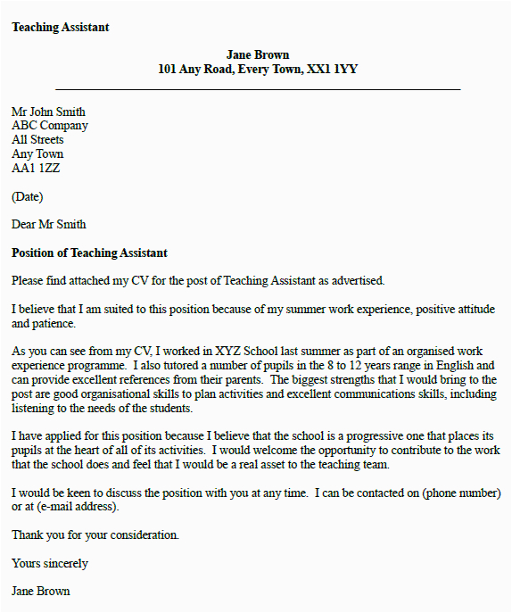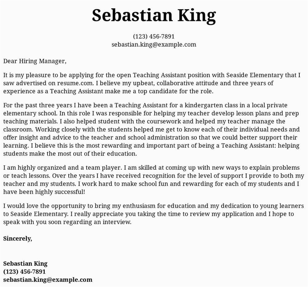 Following you are searching for the absolute job, you will of course desire to put your best foot refer like an impressive and well-formatted resume. One quirk of assuring that you have such a resume is to download a sample resume cover letter for teacher assistant. These templates can come up with the money for you later than the true resume you are looking for or usefully use them as a guide to create your own.