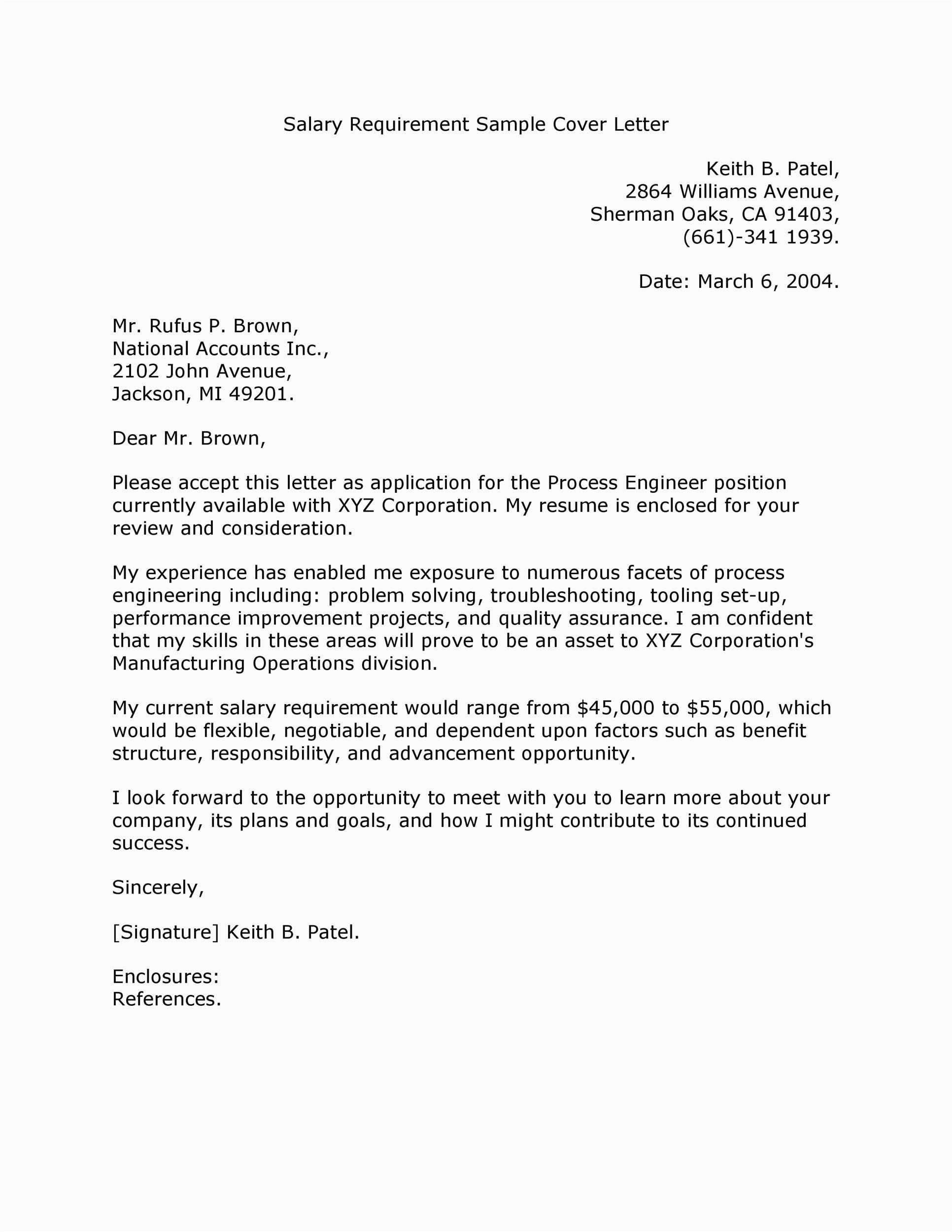 Back To Sample Resume Cover Letter with Salary Requirement