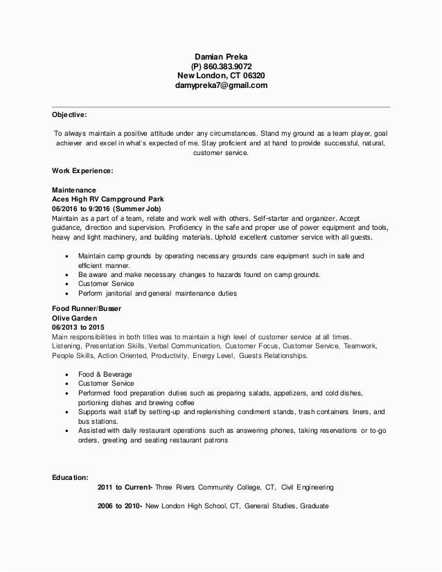 9 photos of the Sample Resume Describing Goals and Positive attitude
