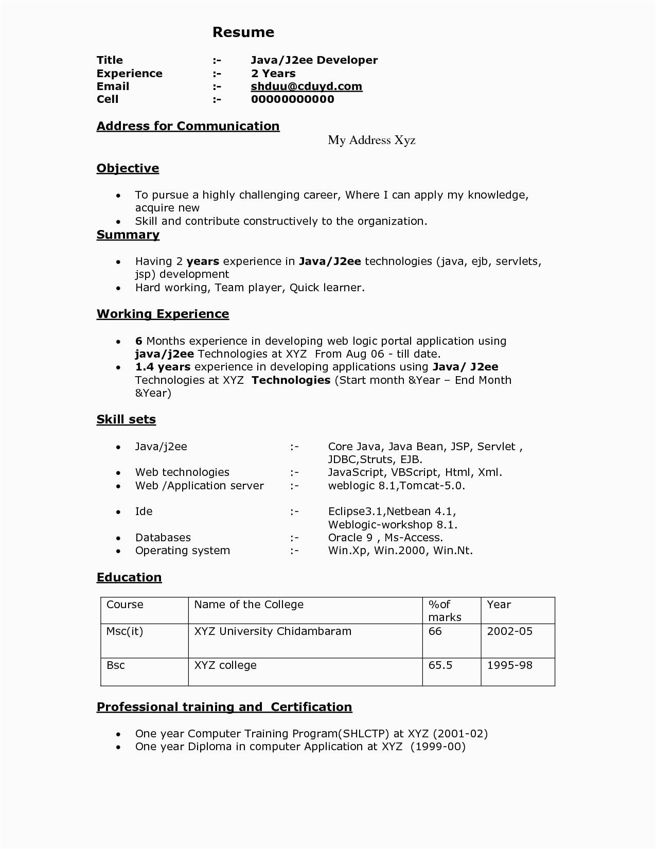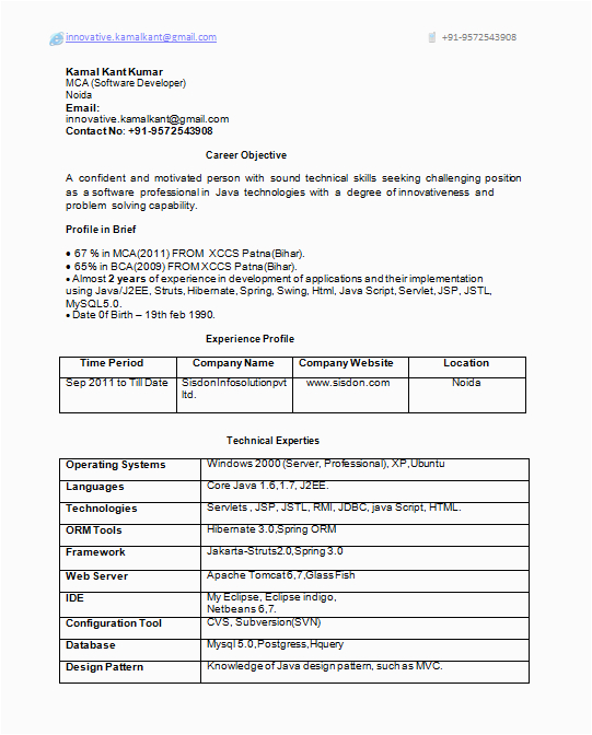 9 photos of the Sample Resume for 2 Years Experience In Java