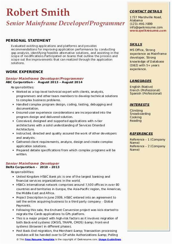Back To Sample Resume for 3 Years Experienced Mainframe Developer