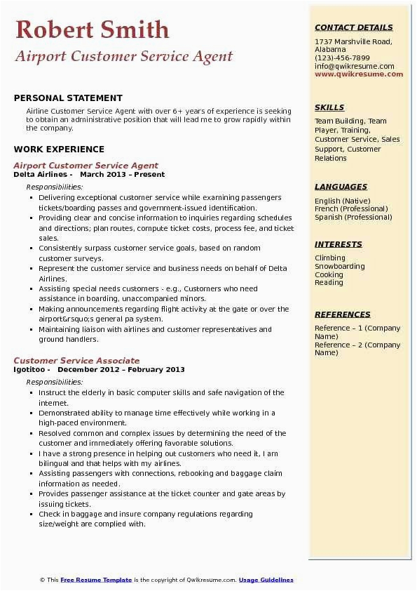 Back To Sample Resume for A Customer for An Airplaneservice No Experience