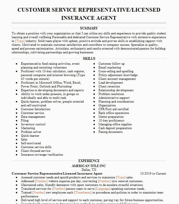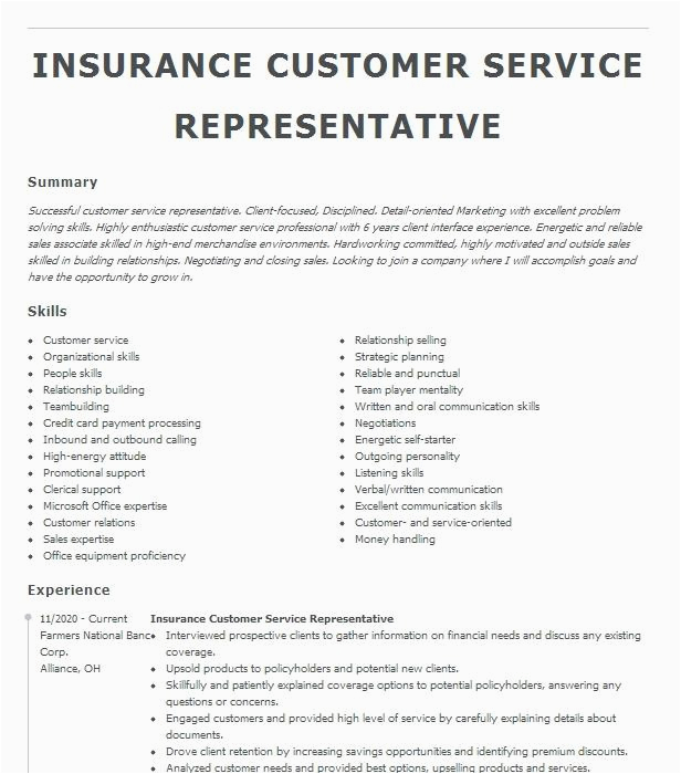 9 photos of the Sample Resume for A Customer Service Position In Insurance Company