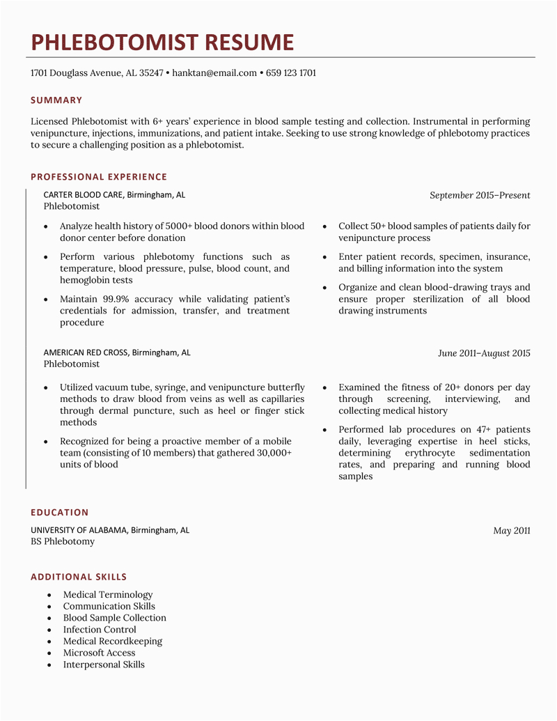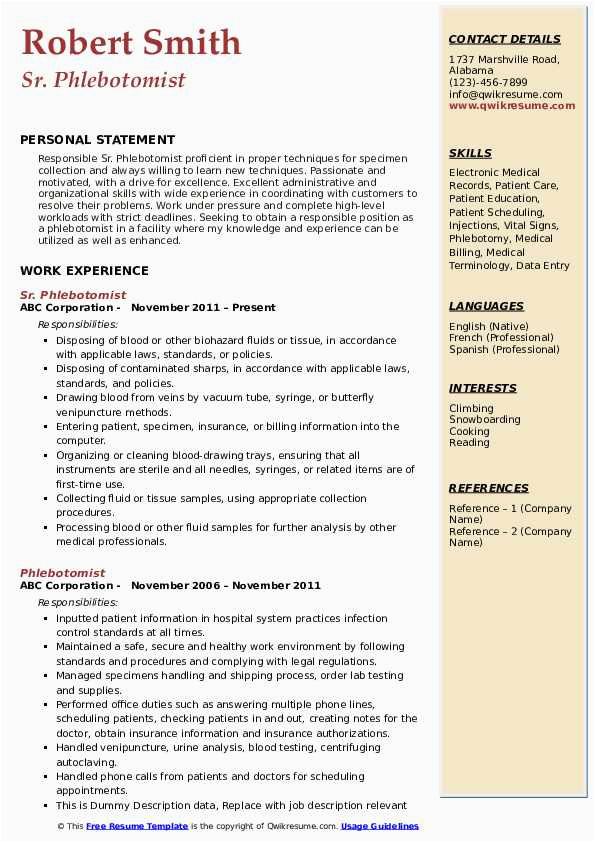 9 photos of the Sample Resume for A Entry Level New Graduate Certified Phlebotomist