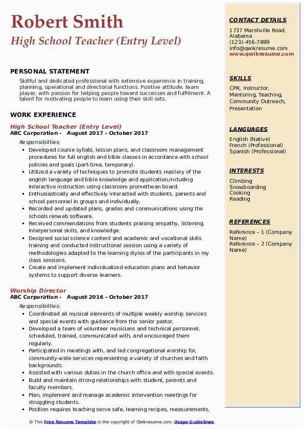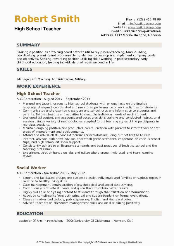 9 photos of the Sample Resume for A High School Teacher