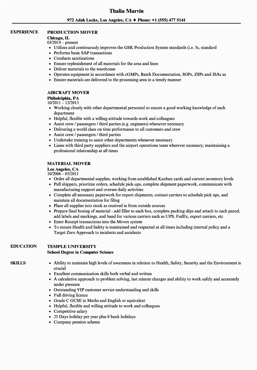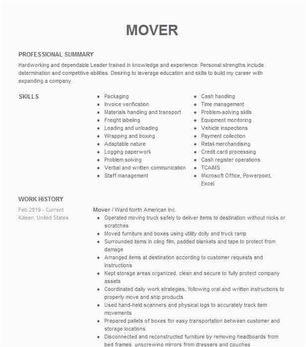 Back To Sample Resume for A Mover and Packer
