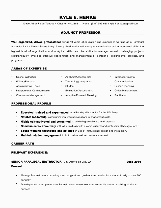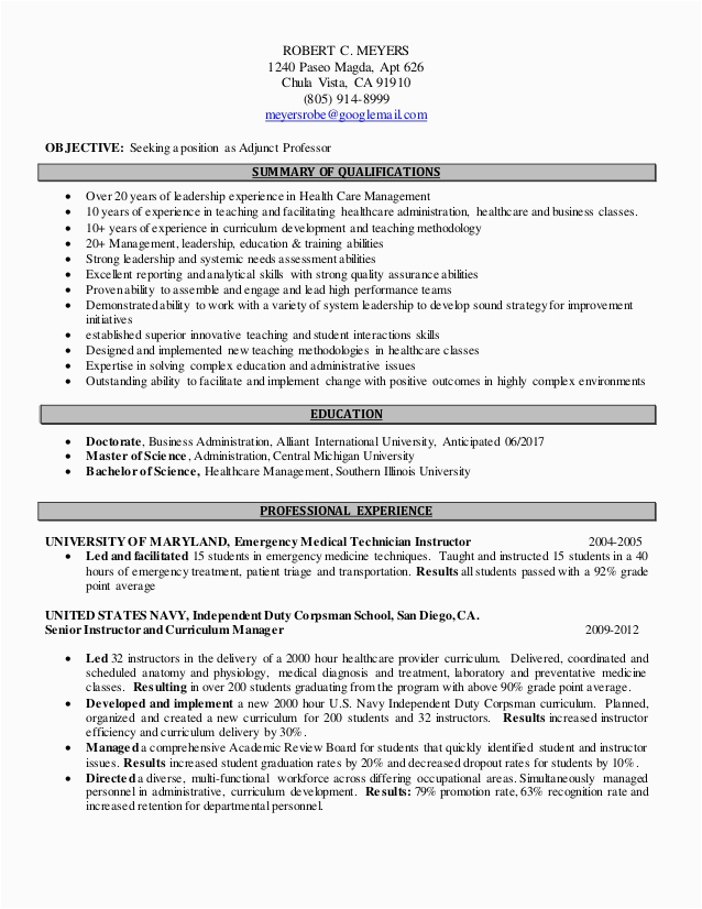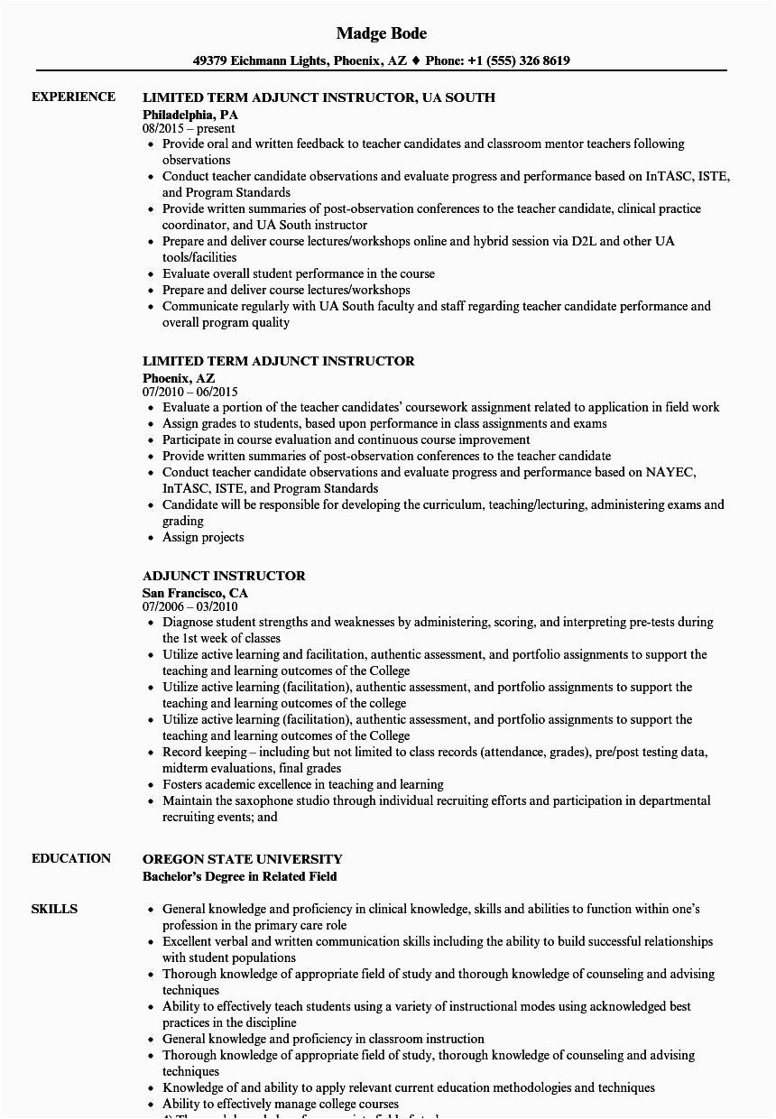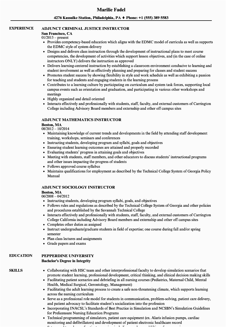 9 photos of the Sample Resume for Adjunct Professor Position
