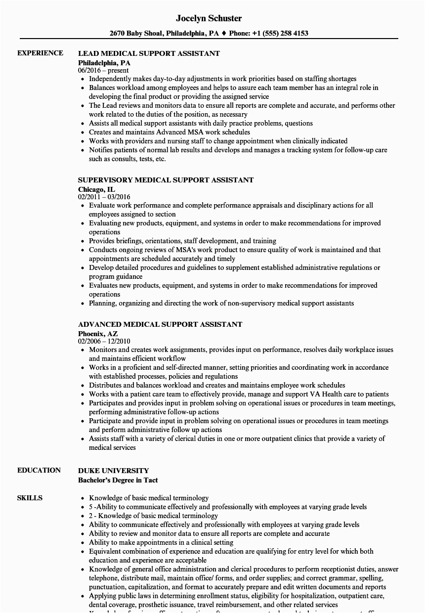 Advanced Medical Support Assistant Resume Example VA San