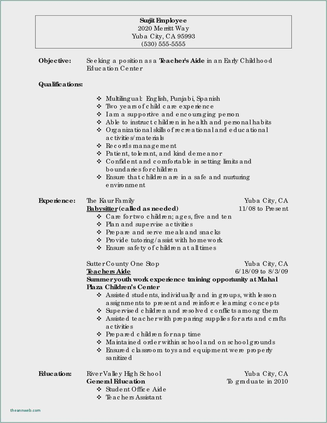 Caregiver Resume No Experience New Caregiver Resume Sample