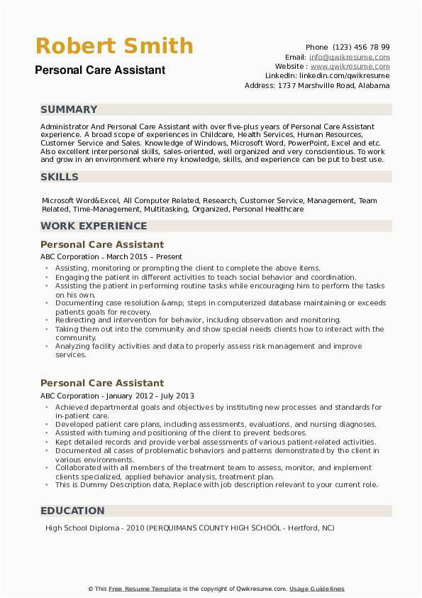 Best Personal Care Assistant Resume Example From