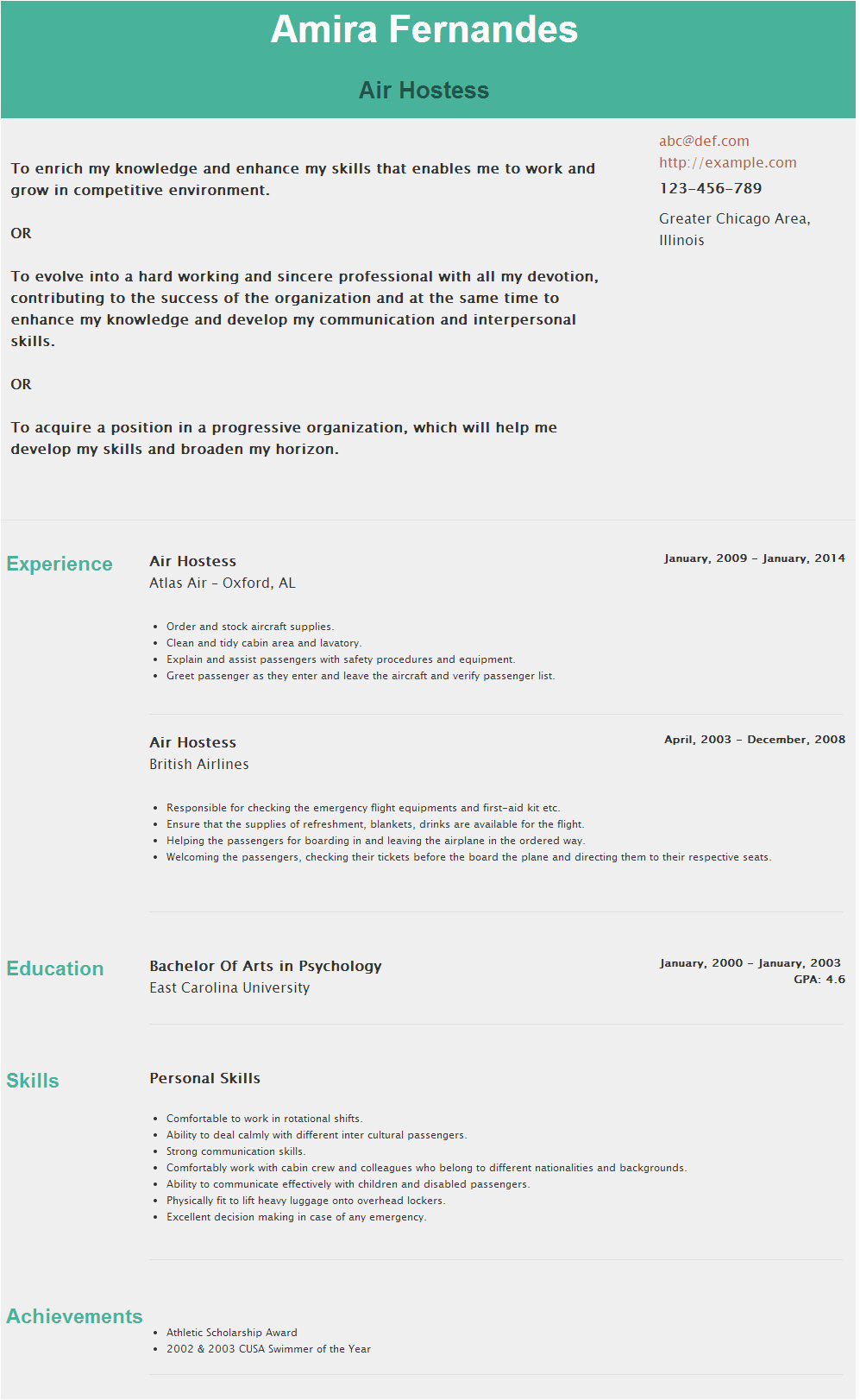 Back To Sample Resume for Air Hostess Fresher
