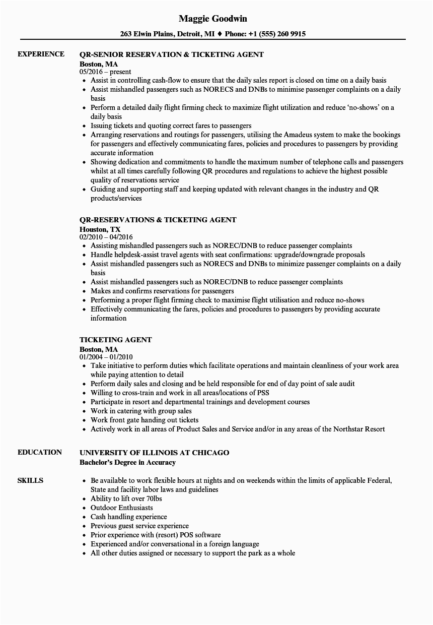 However, these are not your lonely options for locating sample resume for airline ticketing agent. Your scholarly or the academy will most assuredly have more than one resume template that you can use, and will be happy to assist you. usefully head on top of to their Placement Office and you will have a template in no time. After all, it is their job to back you find employment, and as soon as you are well-to-do and a satisfied and valuably employed former student, it is also a feather in their cap.