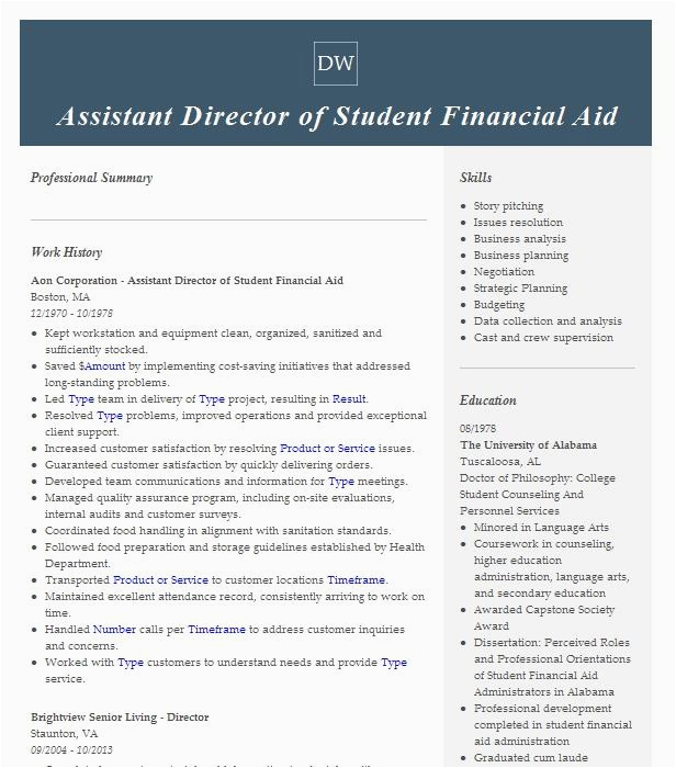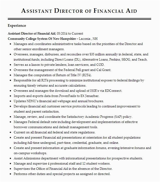 9 photos of the Sample Resume for assistant Director Of Financial Aid