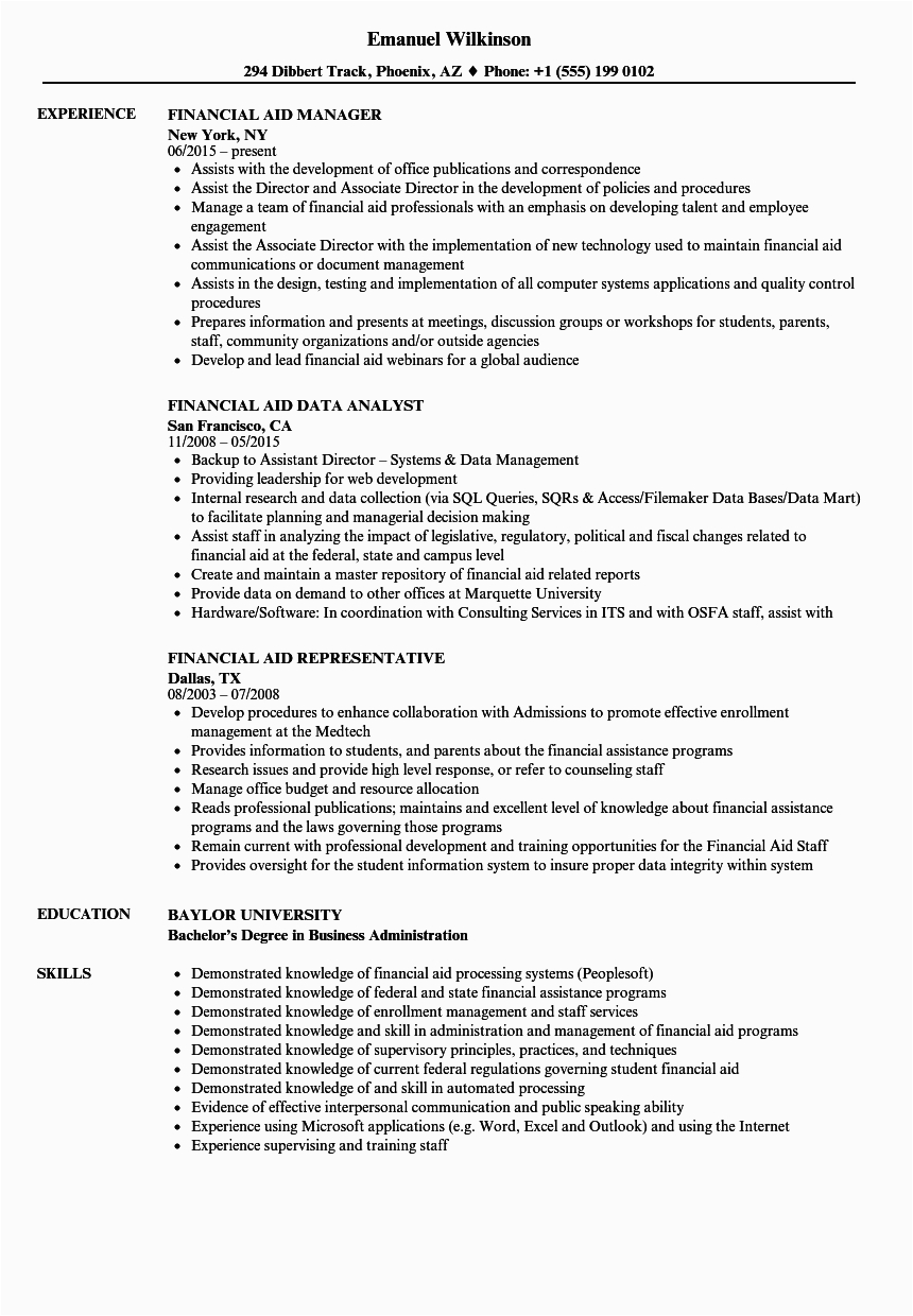 Warning: count(): Parameter must be an array or an object that implements Countable in /var/www/html/naturestudycentre.org/wp-content/themes/silegan-wordpress-theme/inc/themeson.class.php on line 625 Sample Resume for assistant Director Of Financial Aid Financial Aid assistant Resume Samples