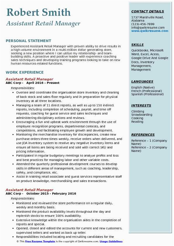 9 photos of the Sample Resume for assistant Store Manager In Retail