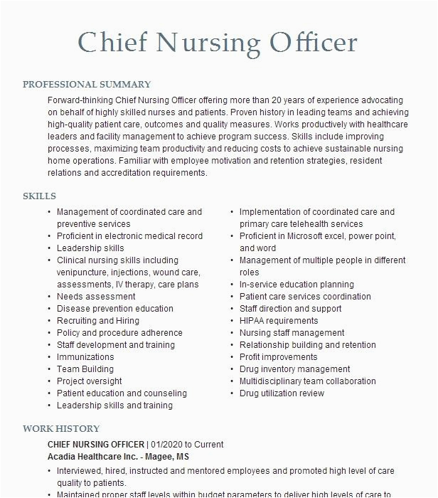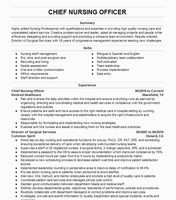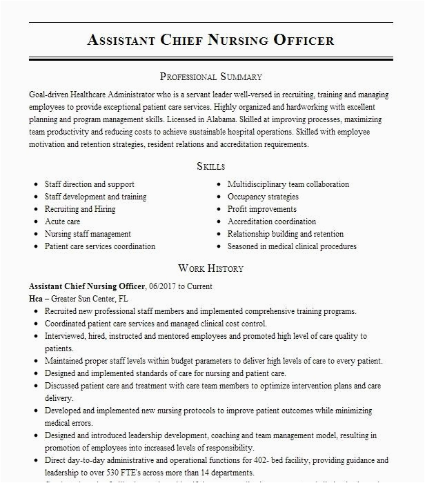 9 photos of the Sample Resume for asst Cheif Nursing Officer