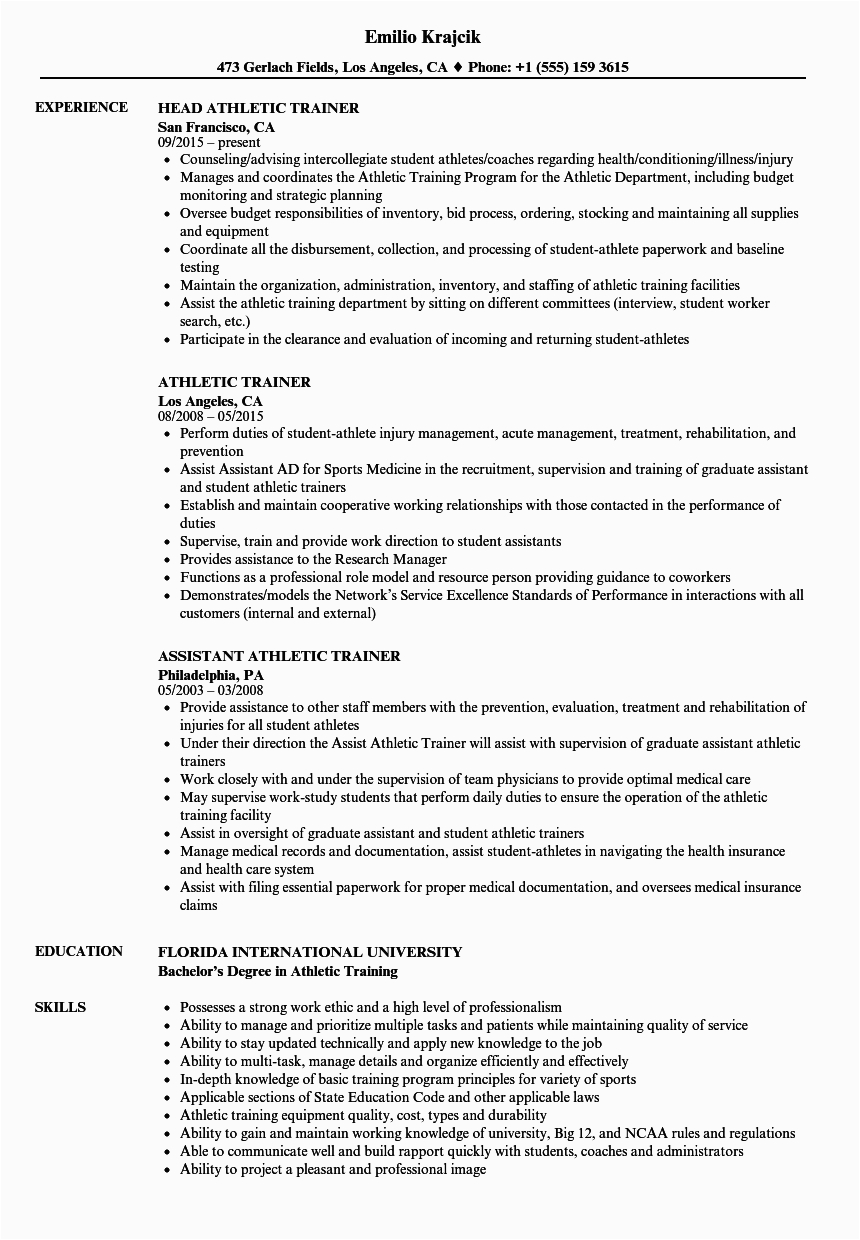 Sample Resume for athletic Trainer Position Resume Samples athletic Trainer Resume Sample and all other pictures, designs or photos on our website are copyright of their respective owners. we get our pictures from another websites, search engines and other sources to use as an inspiration for you. please contact us if you think we are infringing copyright of your pictures using contact page. we will be very happy to help you.