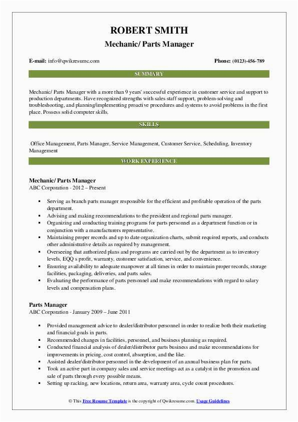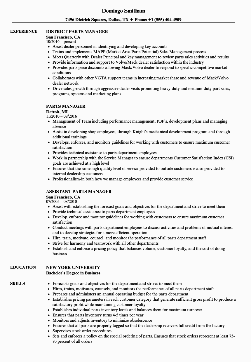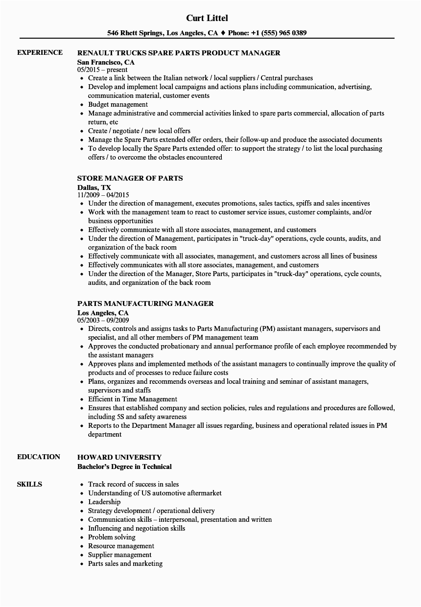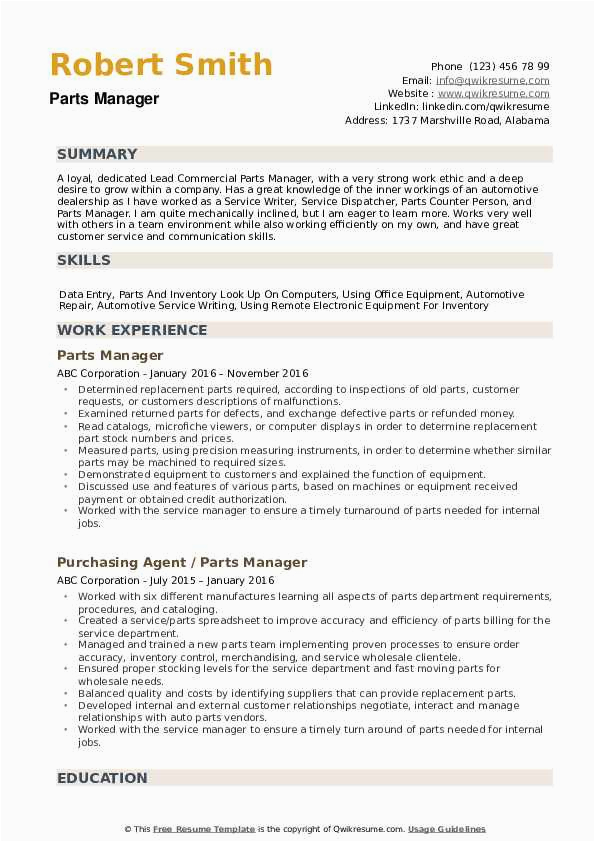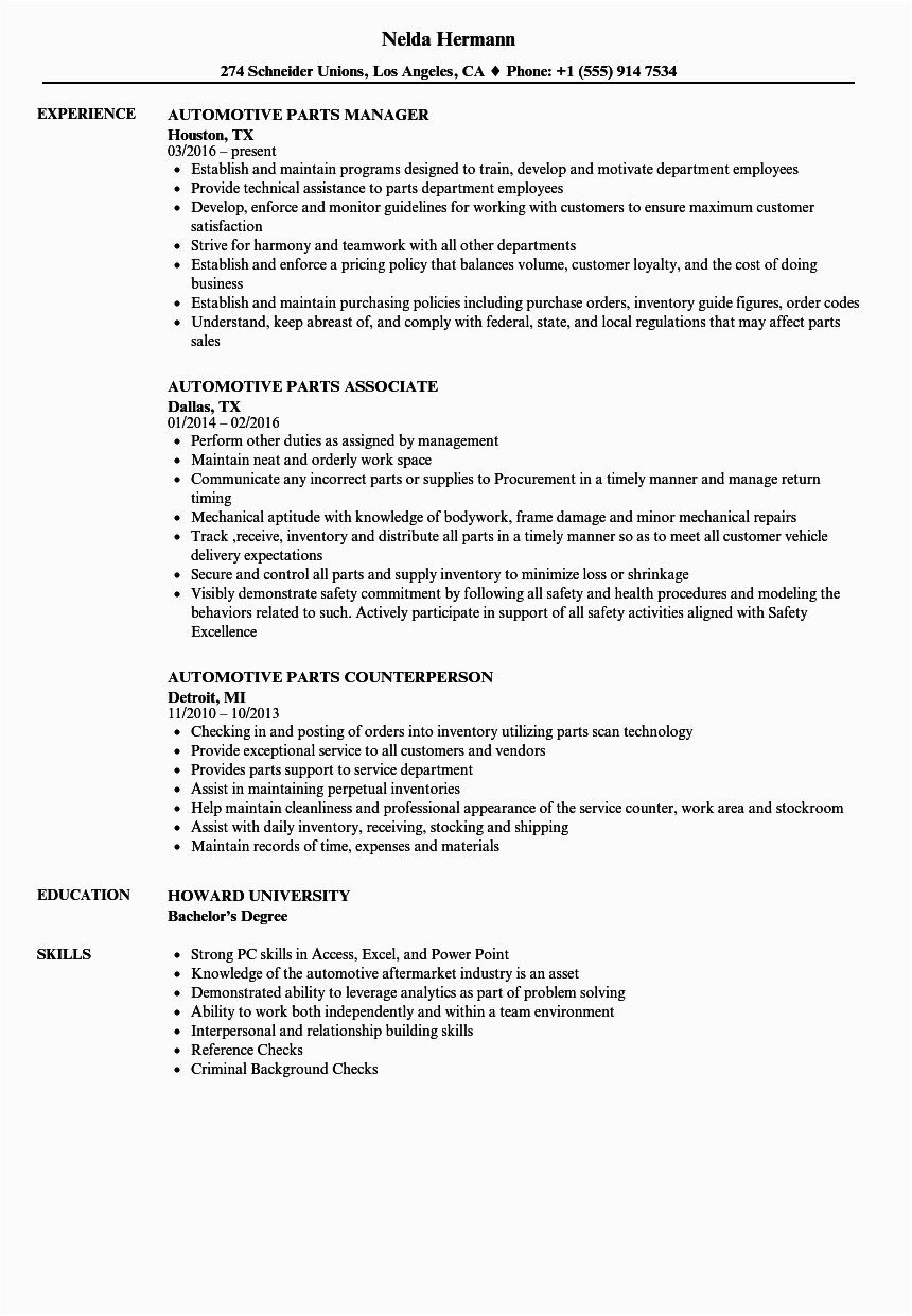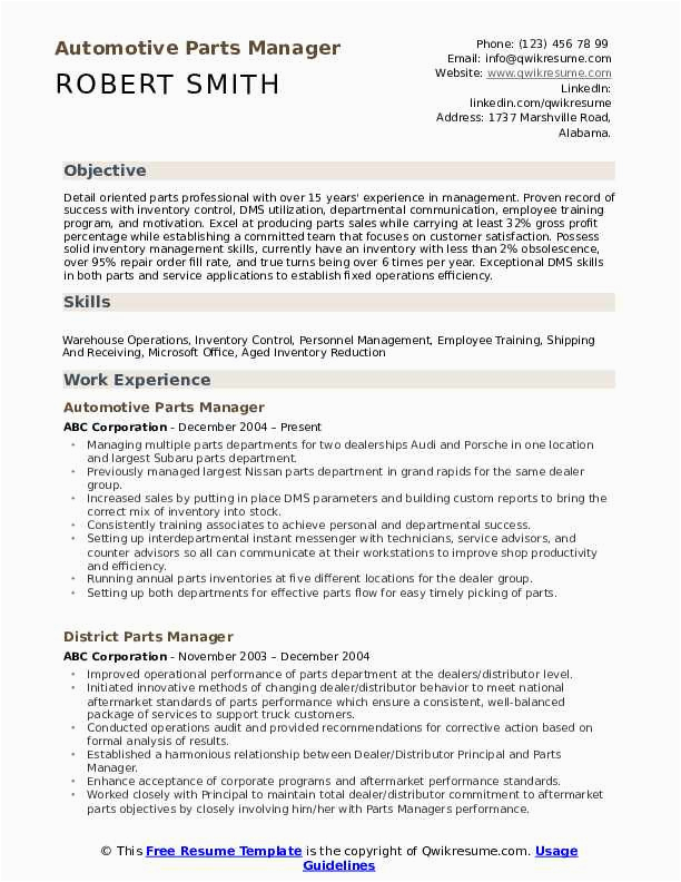 9 photos of the Sample Resume for Auto Parts Manager