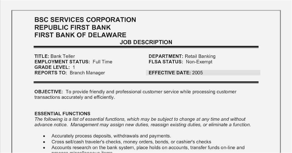 Bank Teller Resume No Experience Unique Bank Teller Resume