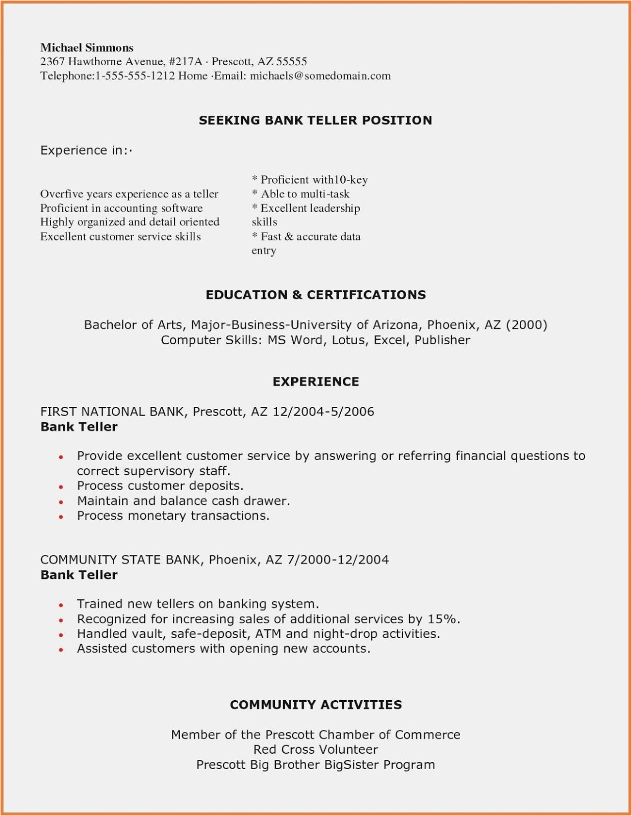 9 photos of the Sample Resume for Bank Teller In Canada