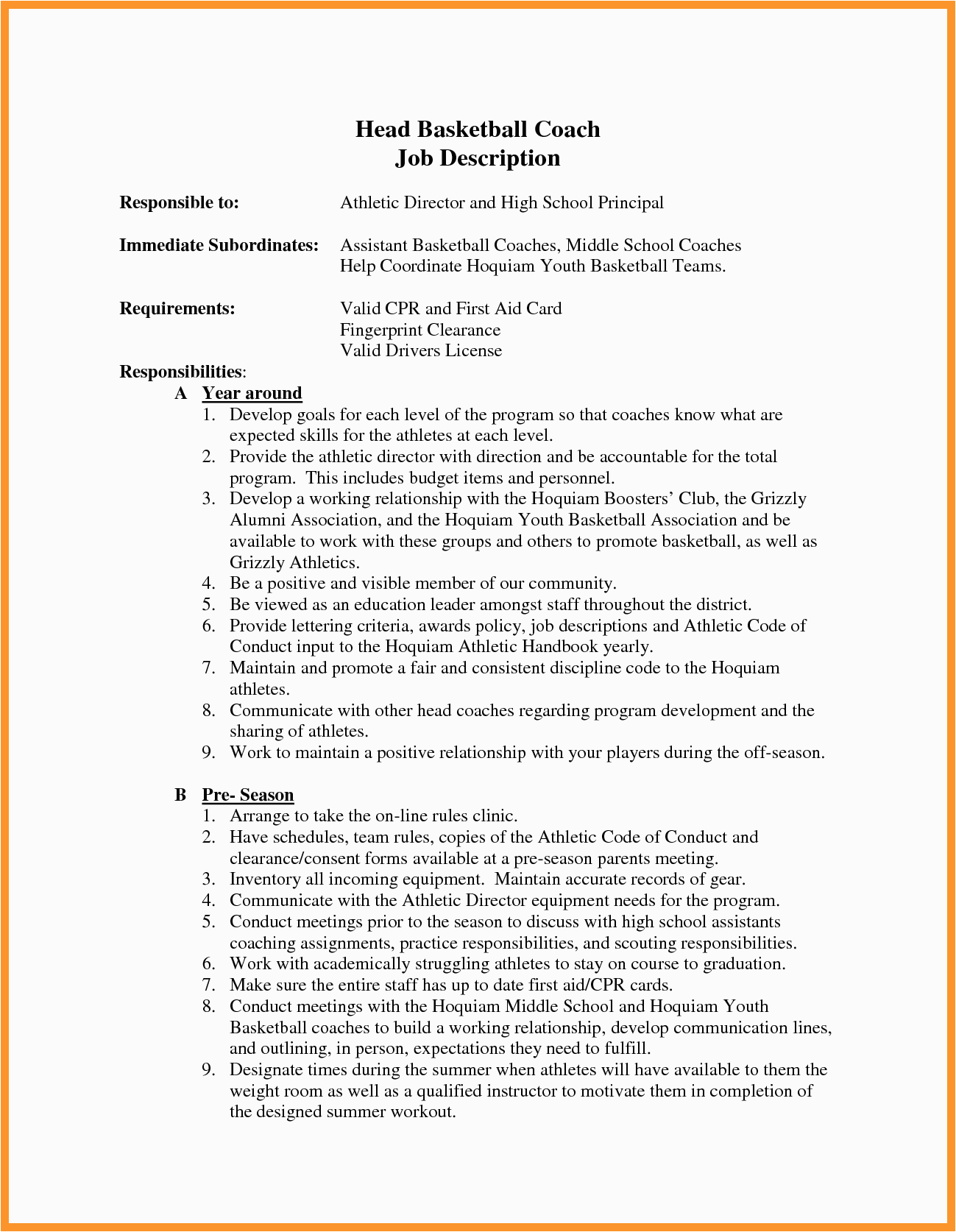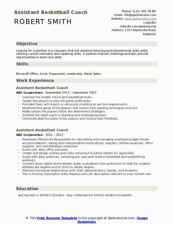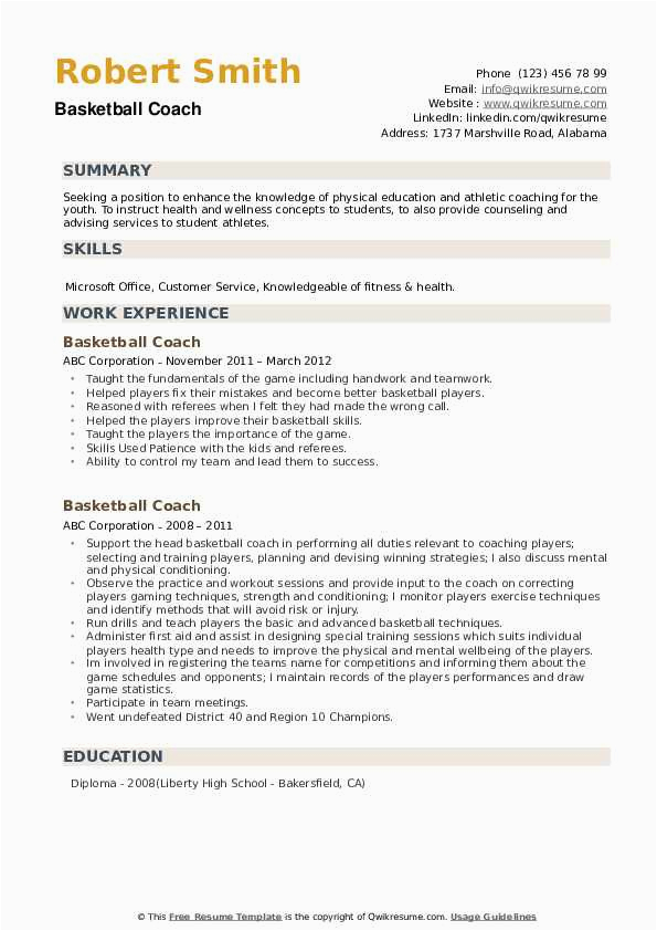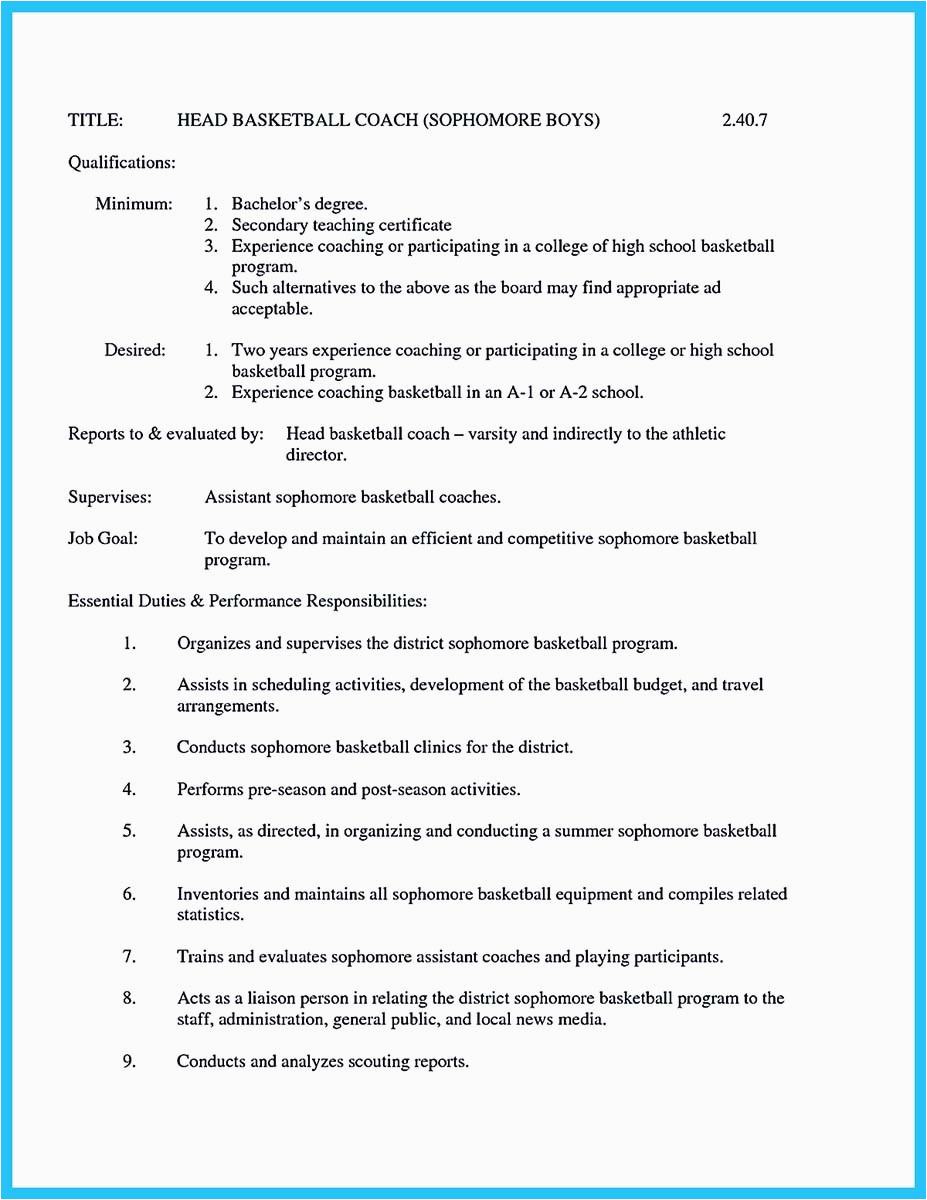 in the manner of you are searching for the absolute job, you will of course want to put your best foot dispatch subsequent to an fabulous and well-formatted resume. One artifice of assuring that you have such a resume is to download a sample resume for basketball coaching position. These templates can meet the expense of you considering the perfect resume you are looking for or helpfully use them as a lead to make your own.