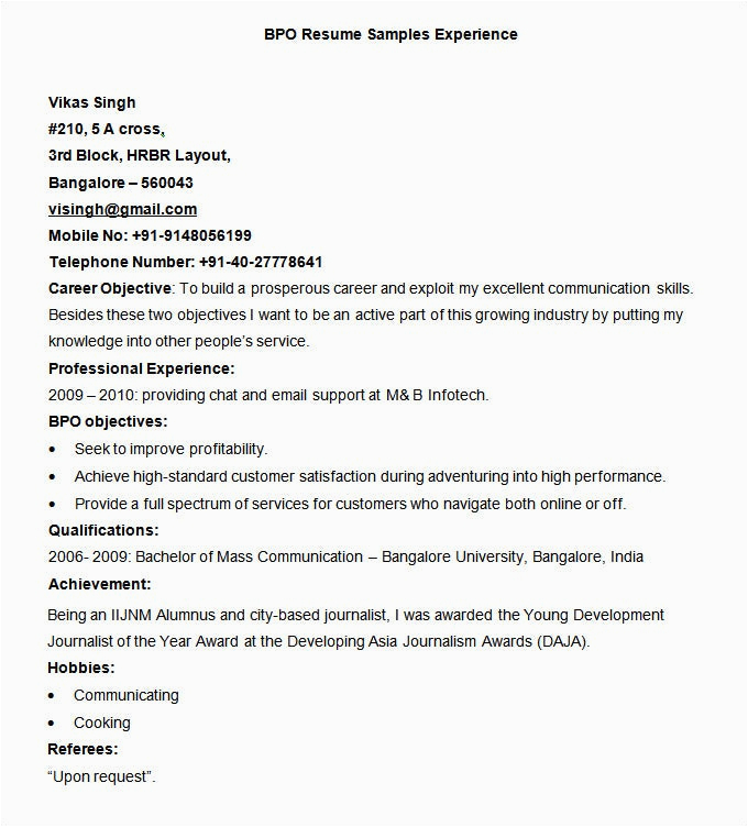 And for every website you come across that has a sample resume for bpo voice process experienced, you will locate that there are specialized templates for just approximately any type of resume you wish to create. You can locate a sample resume for bpo voice process experienced for an entry-level position, and you can find a template for just virtually any type of job or career you are looking for.