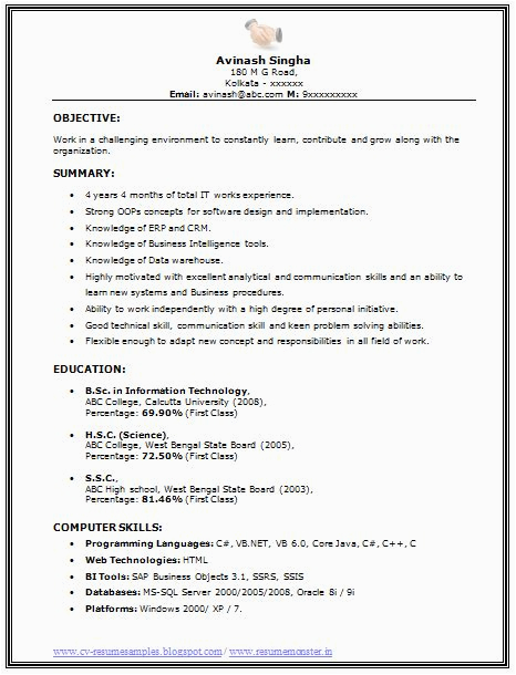 Bsc Chemistry Fresher Resume Format Download BSC IT