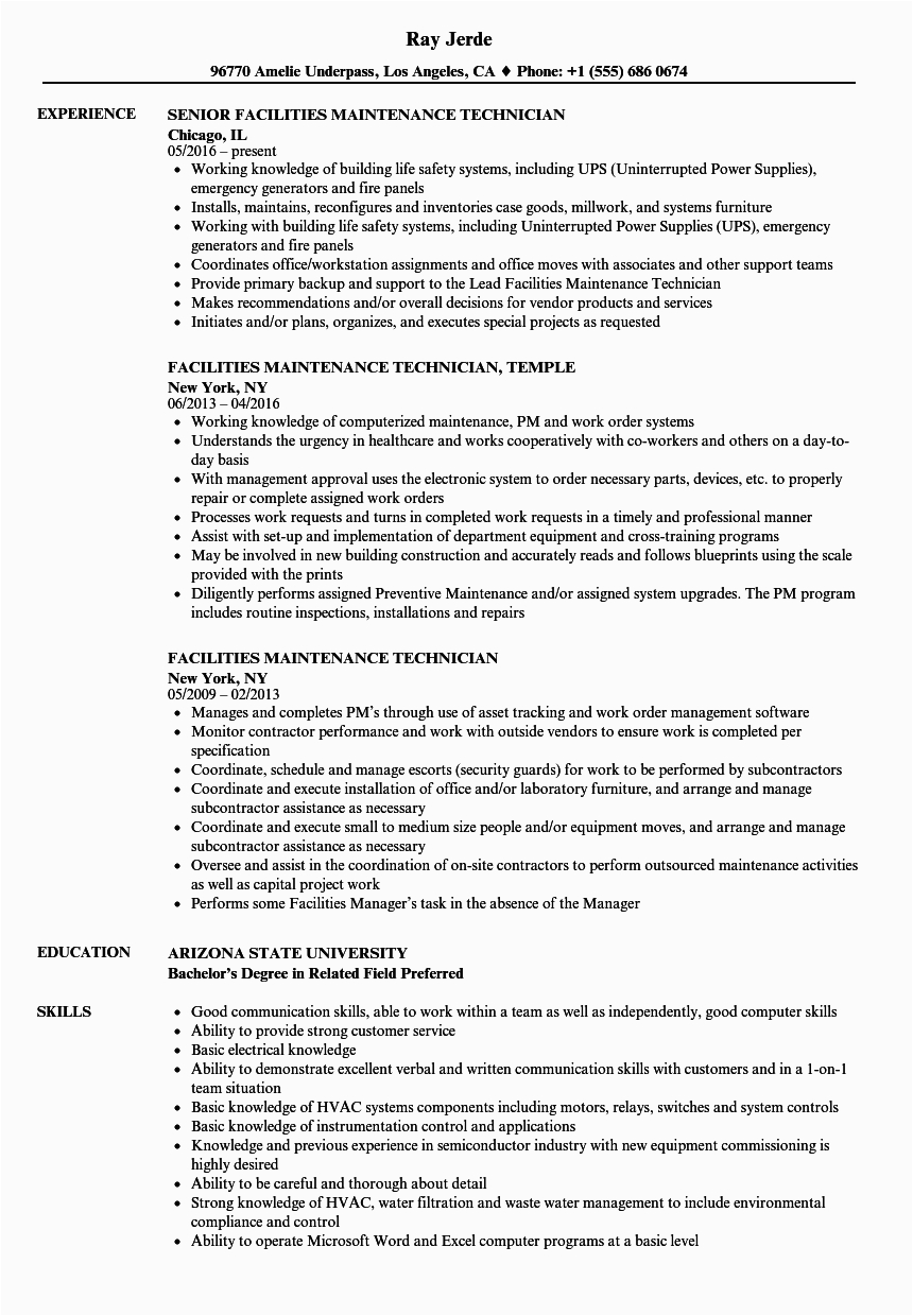 facility maintenance technician resume