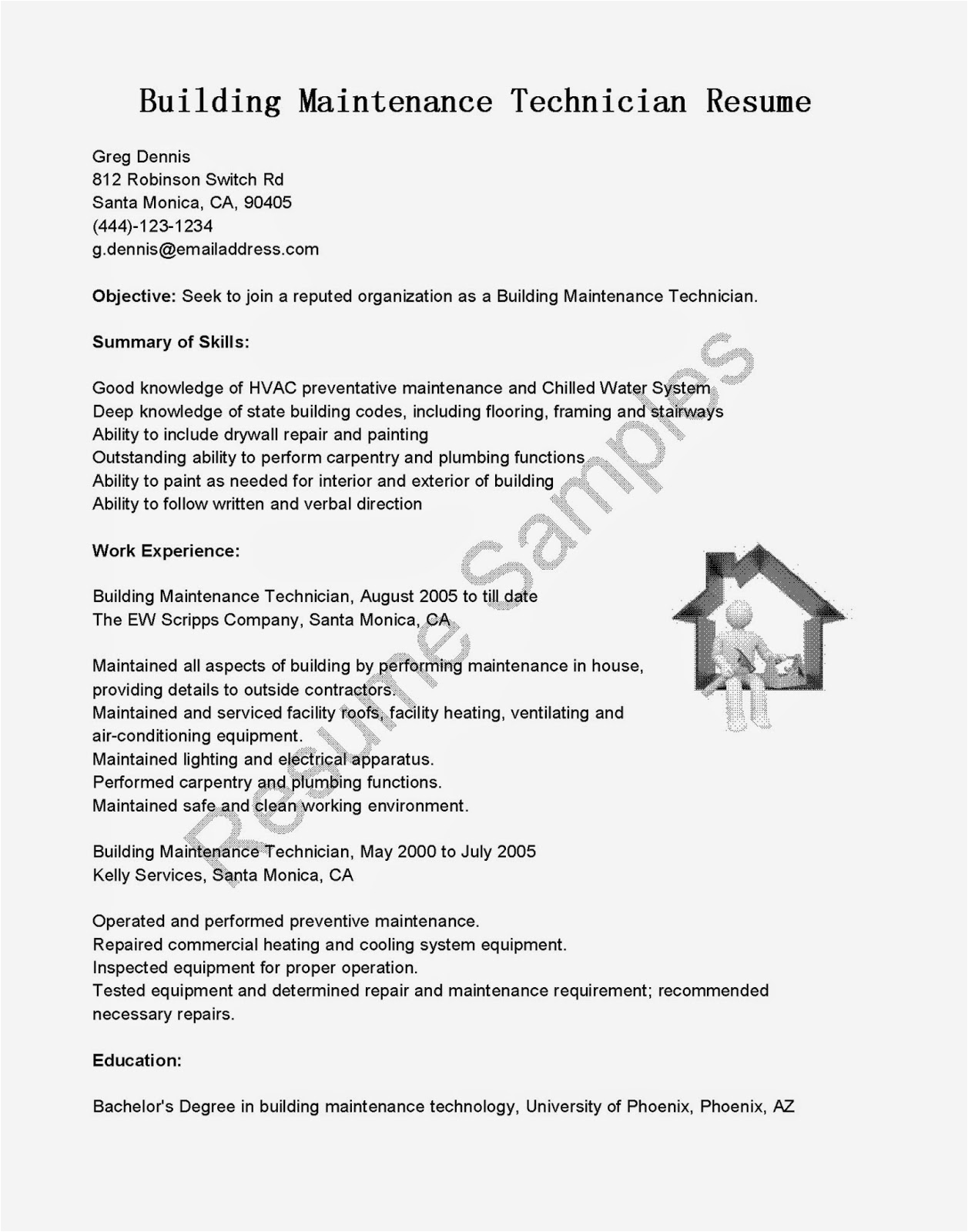 Sample Resume for Building Maintenance Technician