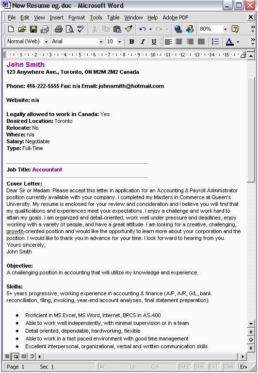 Do you have a friend or relative who has a job you respect and a good grasp of how to format and create a resume? Why not ask them to see the resume that they used, and use that for your sample resume for canada post job?