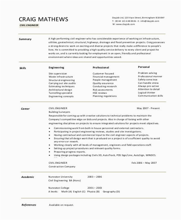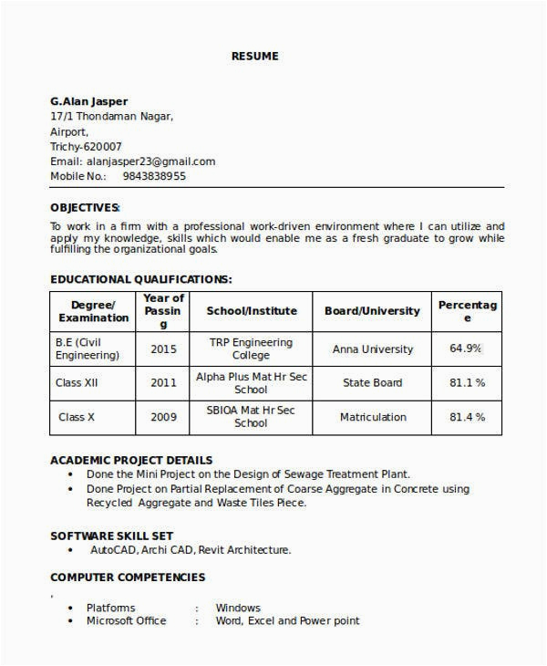 Similar to you are searching for the perfect job, you will of course desire to put your best foot concentrate on next an impressive and well-formatted resume. One mannerism of assuring that you have such a resume is to download a sample resume for civil engineer fresher pdf. These templates can give you taking into consideration the perfect resume you are looking for or usefully use them as a guide to create your own.
