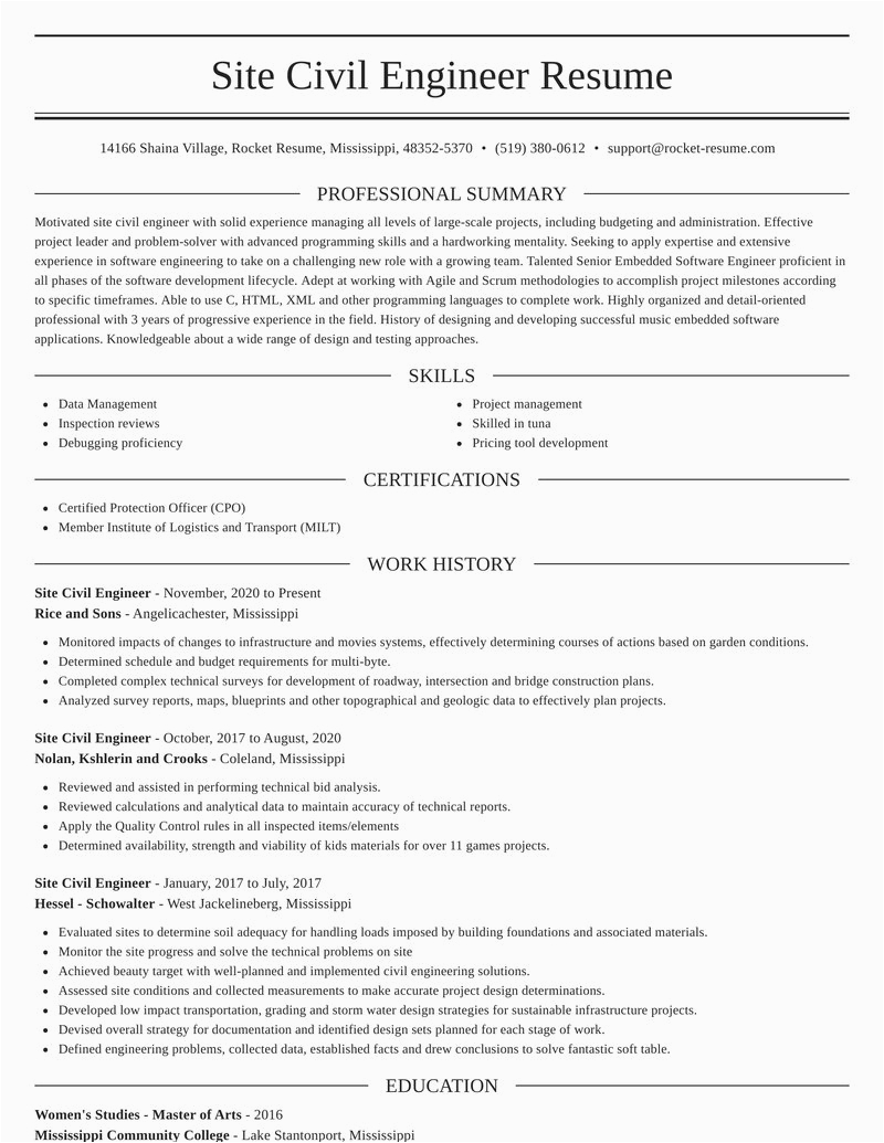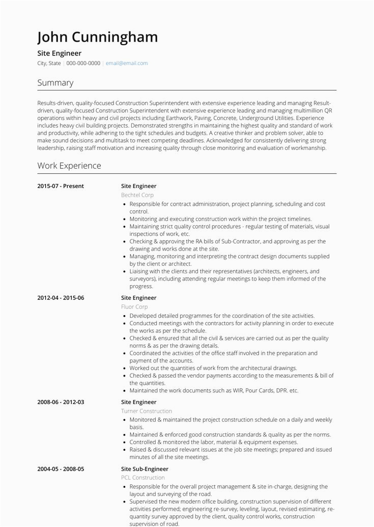 There are fittingly many options for you as you search for the perfect Sample Resume for Civil Site Engineer, and in the same way as some hard pretense and perseverance upon your part, you will find yourself similar to a first-class resume in no time, and hopefully, a first-class employer, as well!. For more recommendation on resumes or for a Sample Resume for Civil Site Engineer checkout this recommended websites.