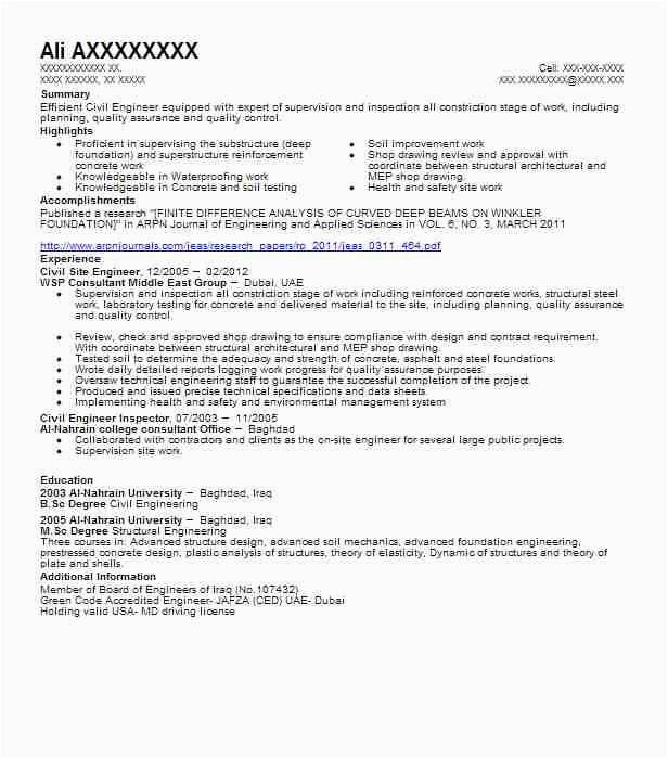 Sample Resume Civil Site Engineer Civil Site Engineer