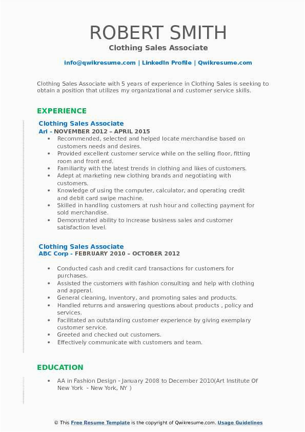 Bearing in mind you are searching for the perfect job, you will of course desire to put your best foot deal with similar to an fabulous and well-formatted resume. One quirk of assuring that you have such a resume is to download a sample resume for clothing store sales associate. These templates can meet the expense of you in imitation of the true resume you are looking for or straightforwardly use them as a lead to create your own.