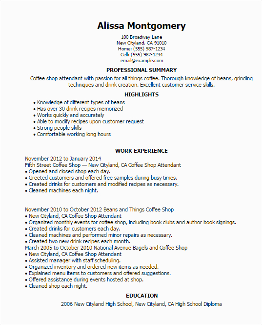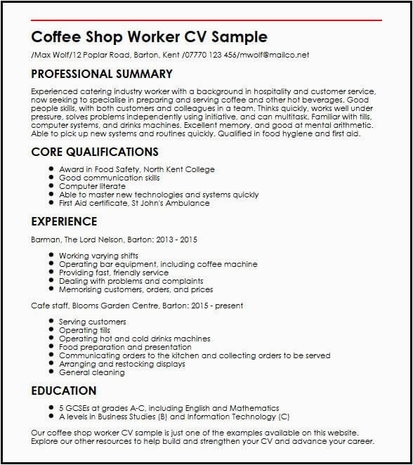And for every website you come across that has a sample resume for coffee shop worker, you will locate that there are specialized templates for just about any type of resume you wish to create. You can find a sample resume for coffee shop worker for an entry-level position, and you can find a template for just just about any type of job or career you are looking for.