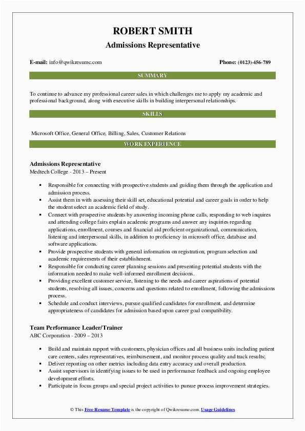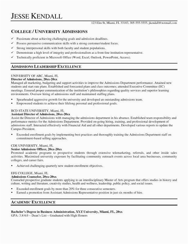 9 photos of the Sample Resume for College Admissions Rep
