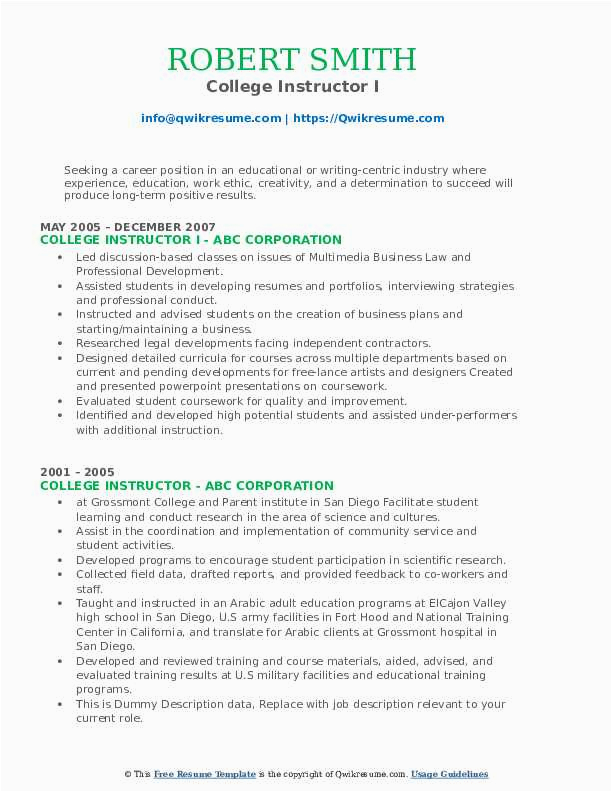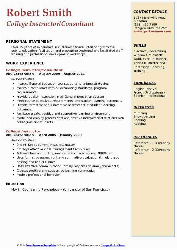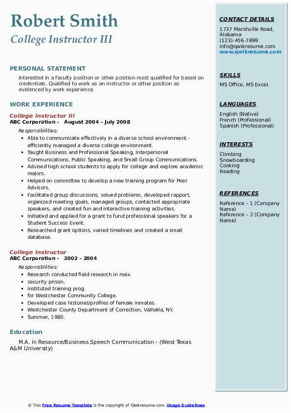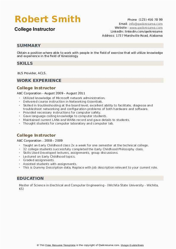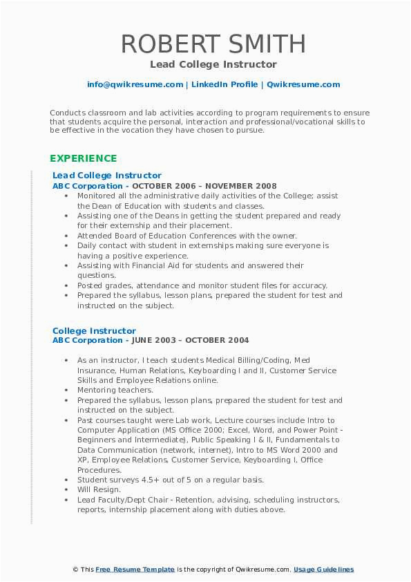 There are correspondingly many options for you as you search for the absolute sample resume for college instructor position, and subsequent to some difficult piece of legislation and perseverance on your part, you will find yourself as soon as a first-class resume in no time, and hopefully, a first-class employer, as well!. For more instruction upon resumes or for a sample resume for college instructor position checkout this recommended websites.