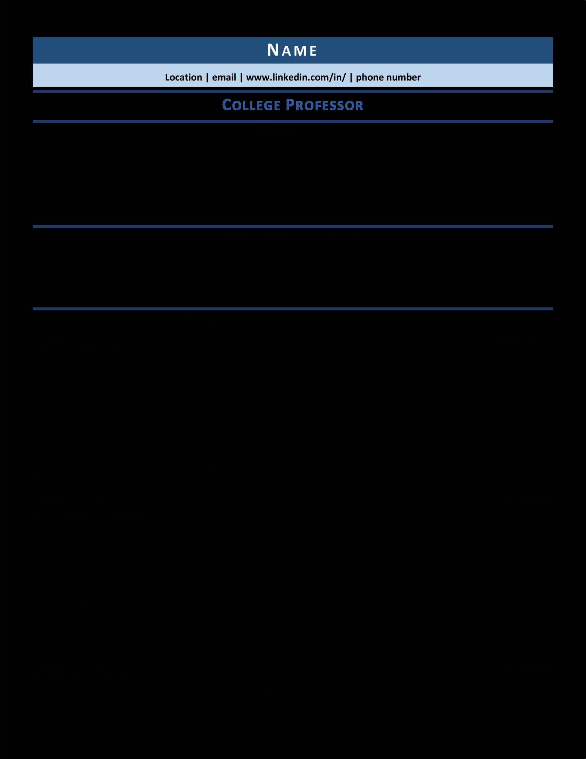 Sample Resume for College Professor Position College Professor Resume Samples and all other pictures, designs or photos on our website are copyright of their respective owners. we get our pictures from another websites, search engines and other sources to use as an inspiration for you. please contact us if you think we are infringing copyright of your pictures using contact page. we will be very happy to help you.