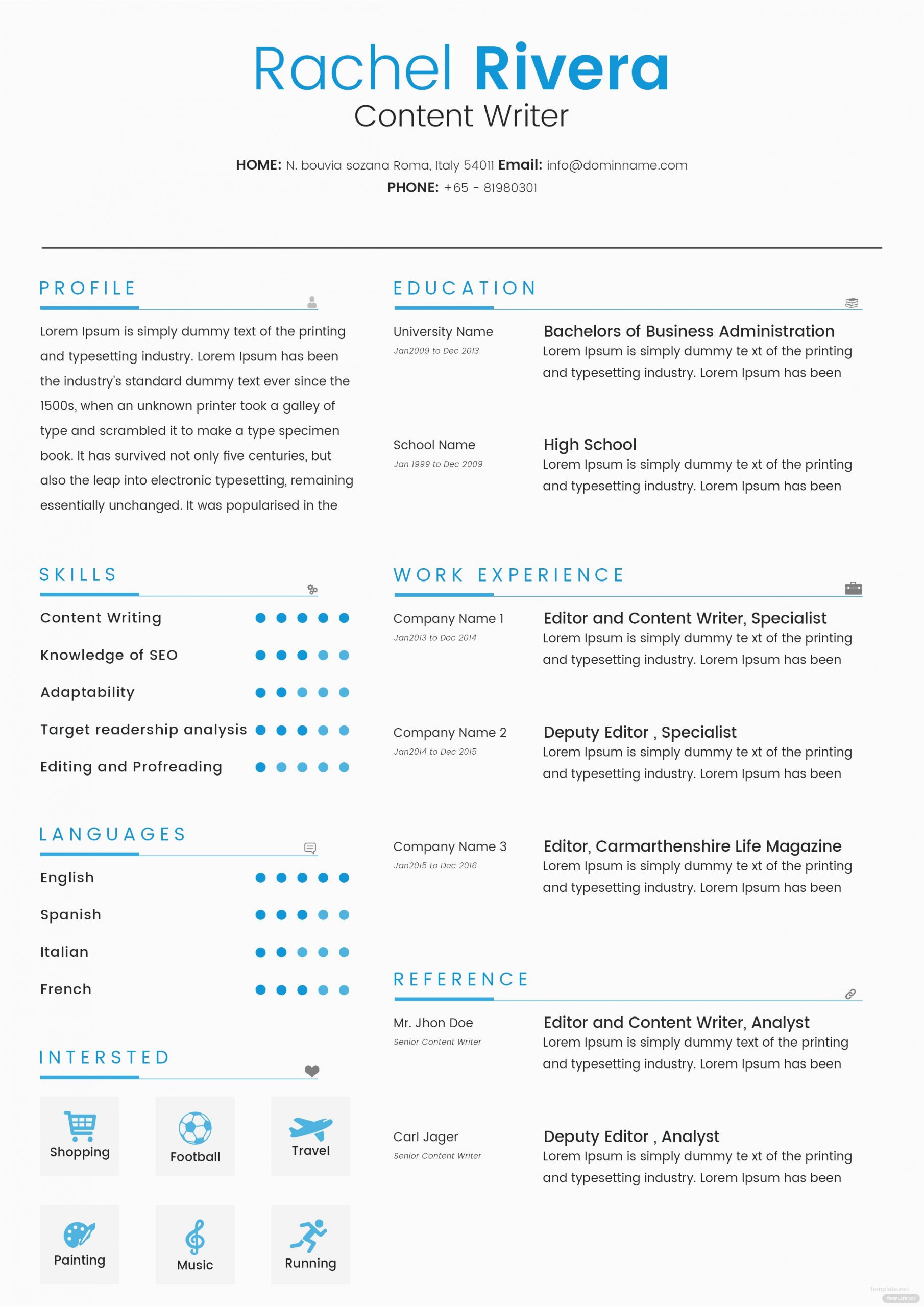 Free Content Writer Resume Template in Adobe shop