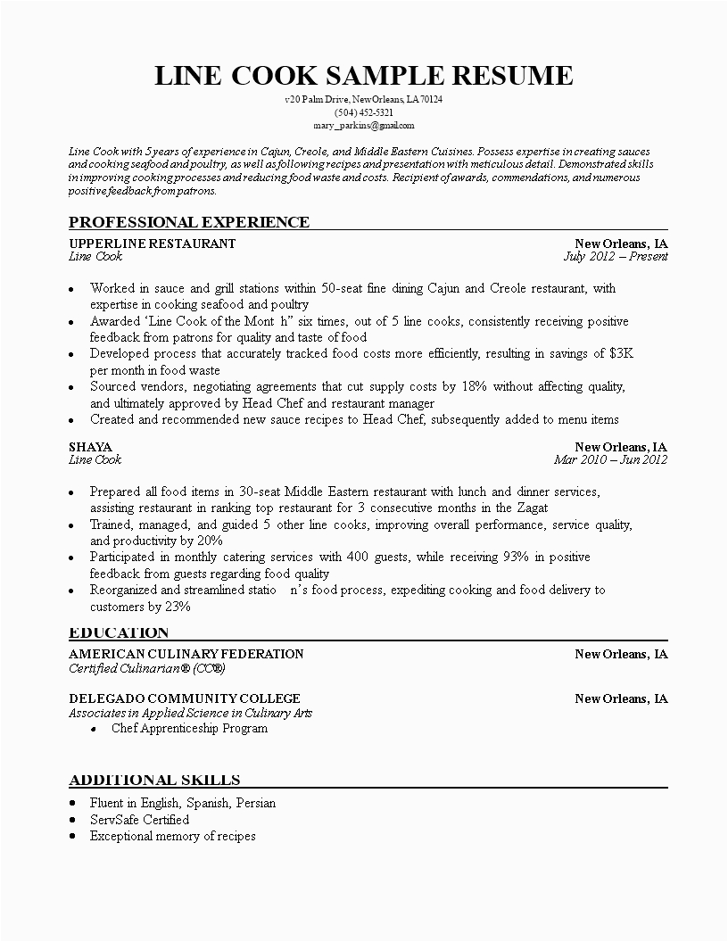 in the same way as you are searching for the absolute job, you will of course want to put your best foot talk to following an impressive and well-formatted resume. One mannerism of assuring that you have such a resume is to download a sample resume for cook in restaurant. These templates can find the money for you behind the correct resume you are looking for or usefully use them as a lead to make your own.