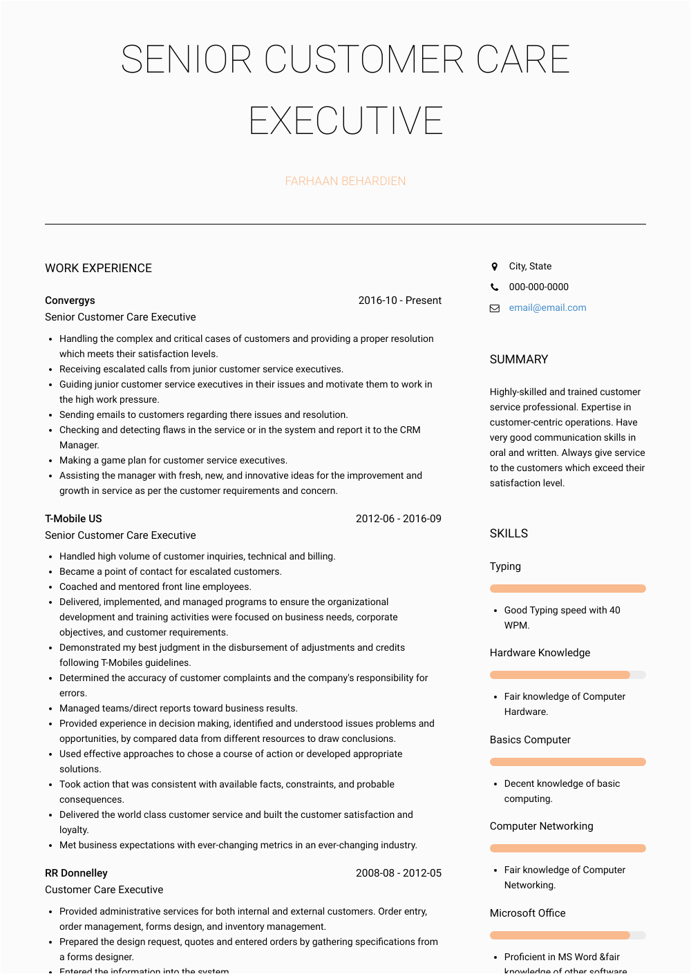 as soon as you are searching for the absolute job, you will of course desire to put your best foot focus on past an fabulous and well-formatted resume. One quirk of assuring that you have such a resume is to download a sample resume for customer care executive in bpo. These templates can find the money for you once the true resume you are looking for or simply use them as a lead to make your own.
