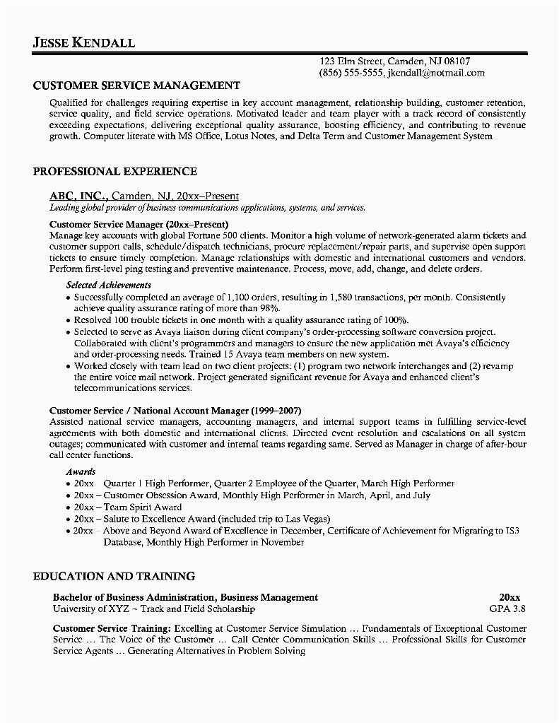 Customer Service Manager Resume umecareer
