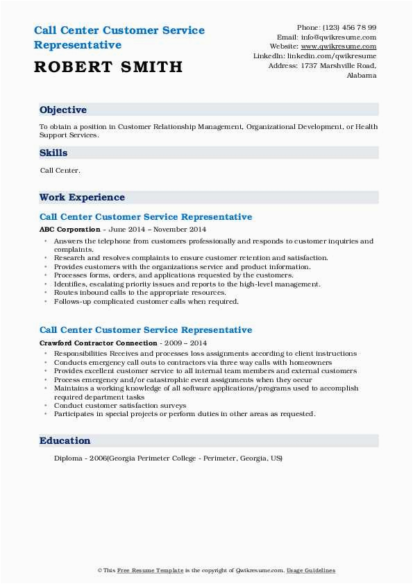 Sample Resume for Customer Service Representative Call Center Call Center Resume Sample and all other pictures, designs or photos on our website are copyright of their respective owners. we get our pictures from another websites, search engines and other sources to use as an inspiration for you. please contact us if you think we are infringing copyright of your pictures using contact page. we will be very happy to help you.
