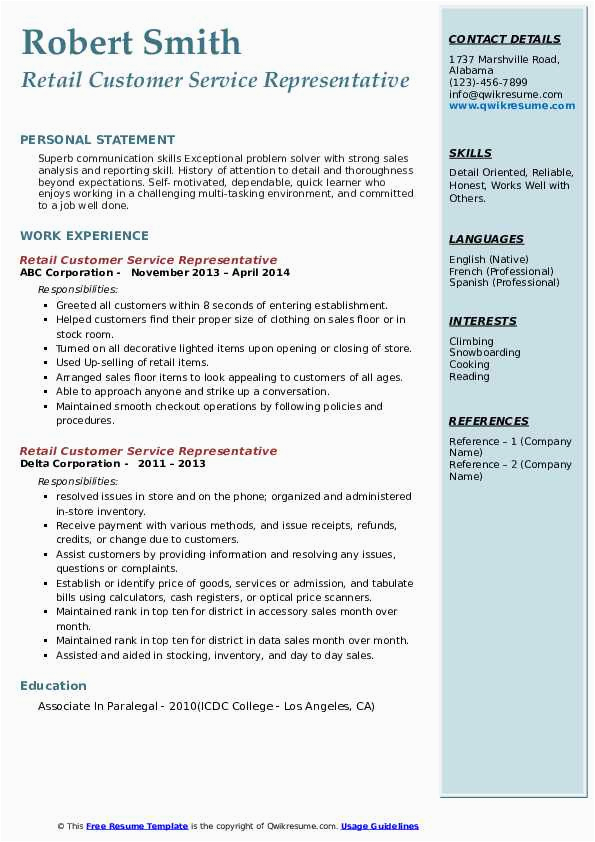 However, these are not your single-handedly options for locating sample resume for customer service representative in retail. Your theoretical or academic circles will most assuredly have more than one resume template that you can use, and will be happy to back you. suitably head more than to their Placement Office and you will have a template in no time. After all, it is their job to put up to you find employment, and like you are rich and a satisfied and usefully employed former student, it is as a consequence a feather in their cap.