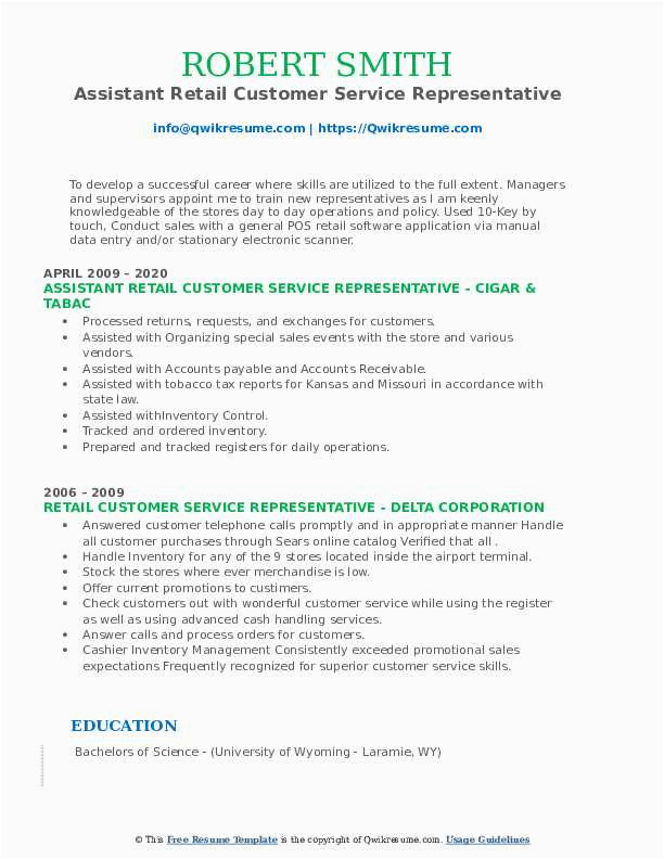 Retail Customer Service Representative Resume Samples