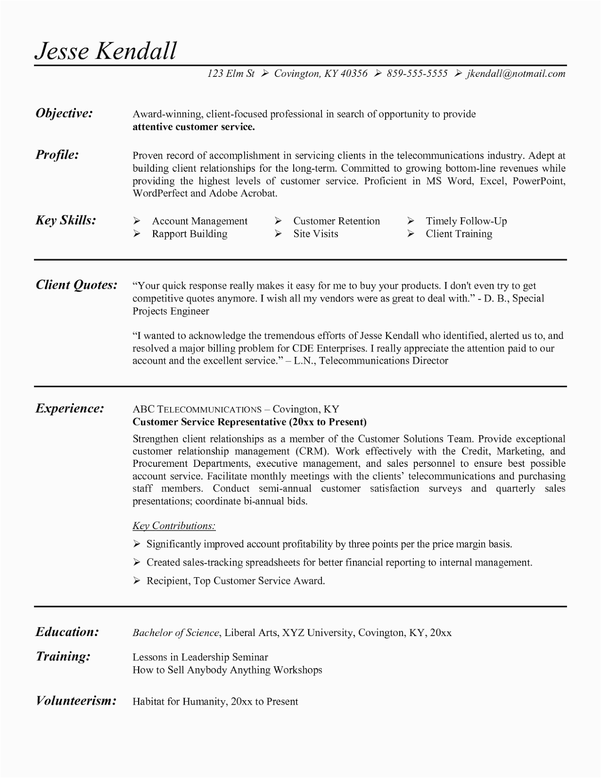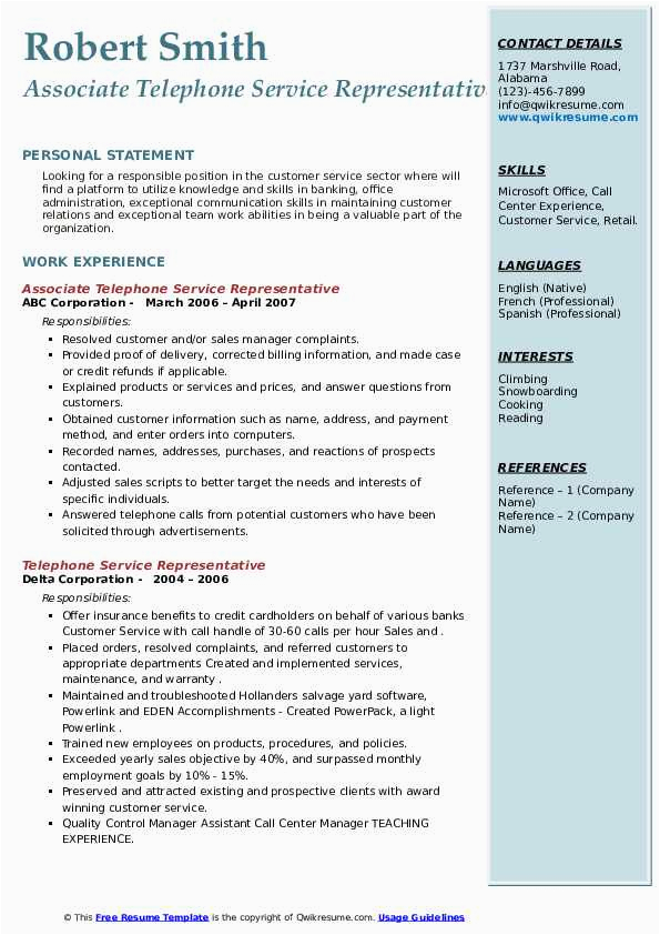 Back To Sample Resume for Customer Service Representative Telecommunications