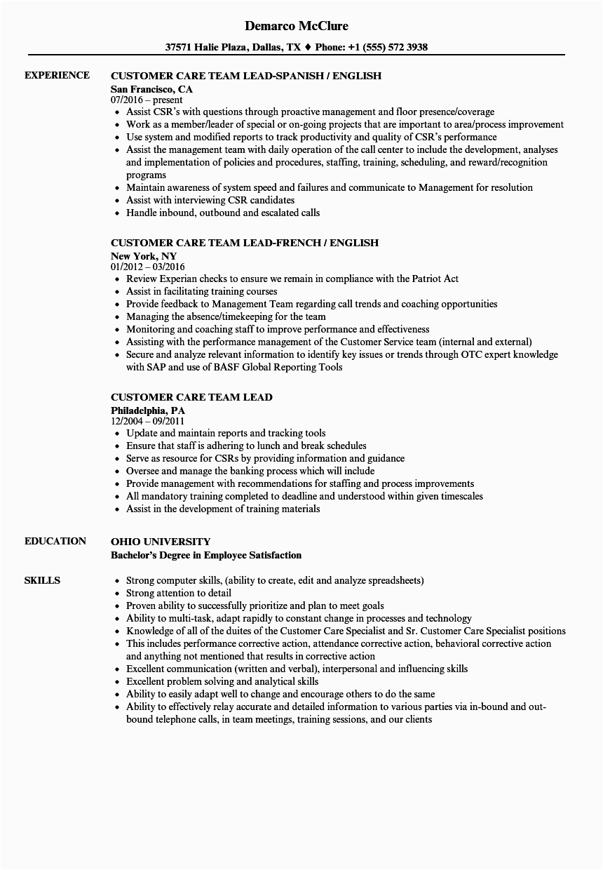 Simple Customer Service Team Lead Resume Team Leader