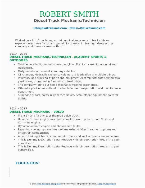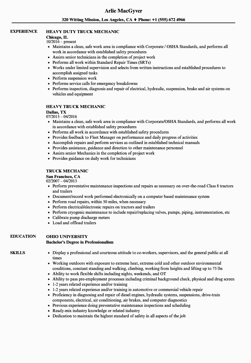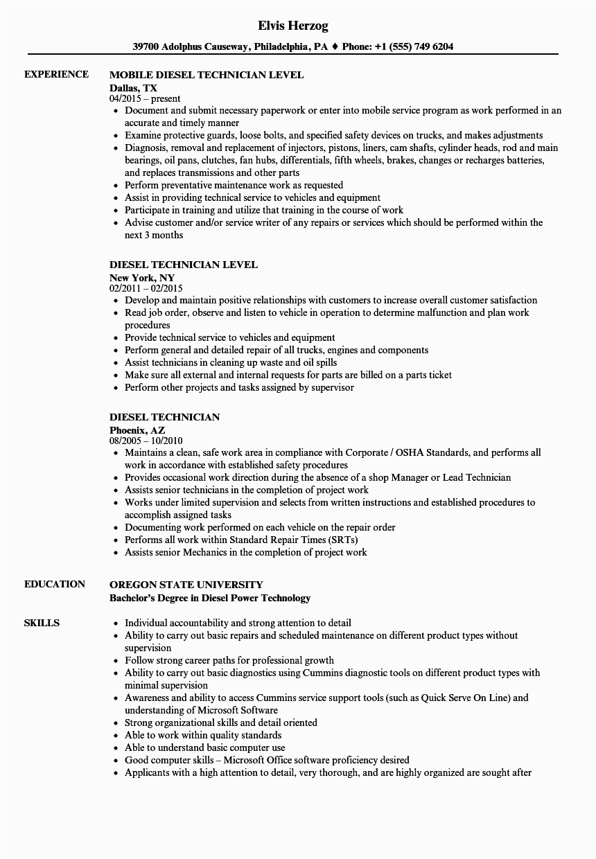 Later than you are searching for the perfect job, you will of course want to put your best foot attend to in imitation of an impressive and well-formatted resume. One way of assuring that you have such a resume is to download a sample resume for diesel truck mechanic. These templates can give you when the exact resume you are looking for or helpfully use them as a lead to create your own.